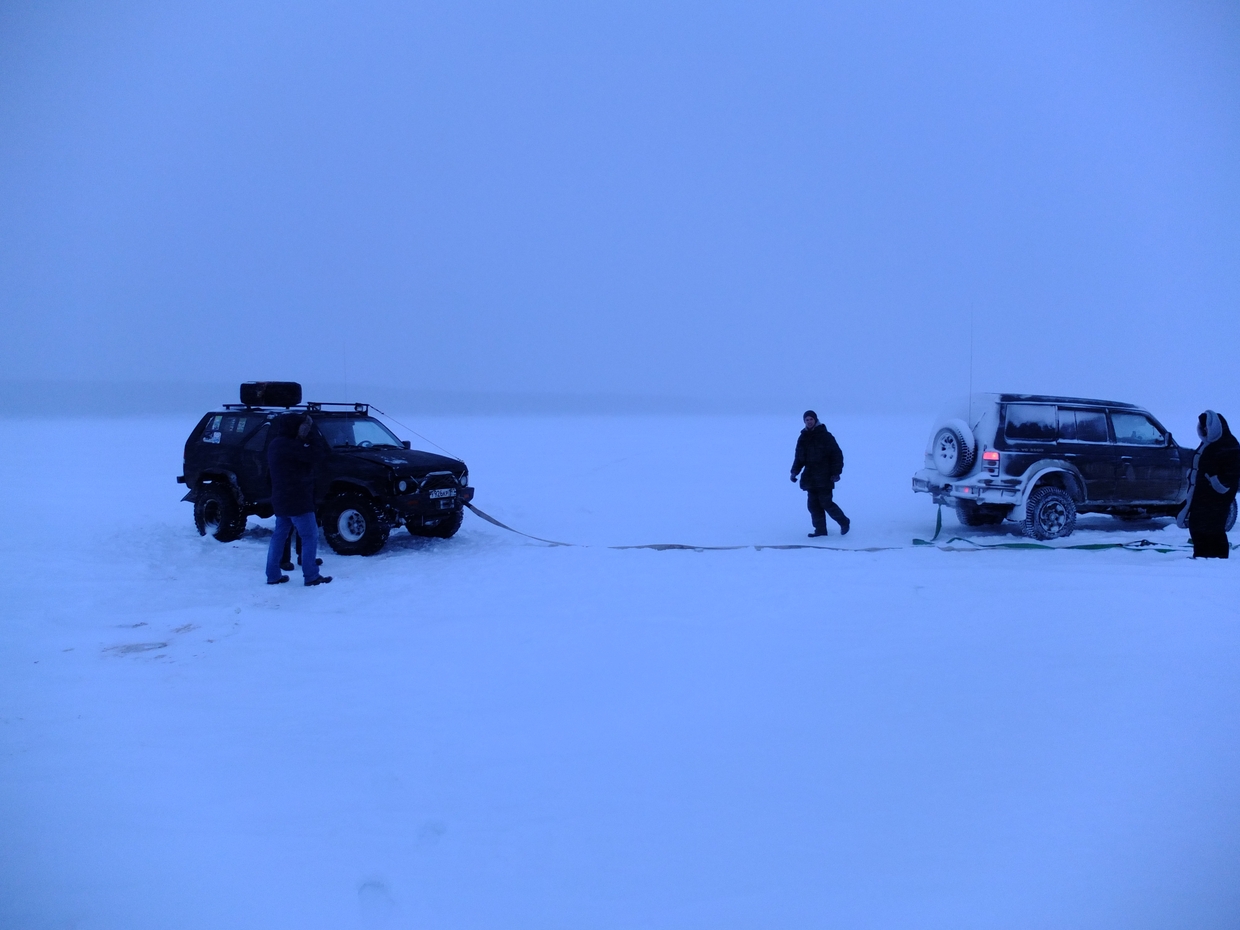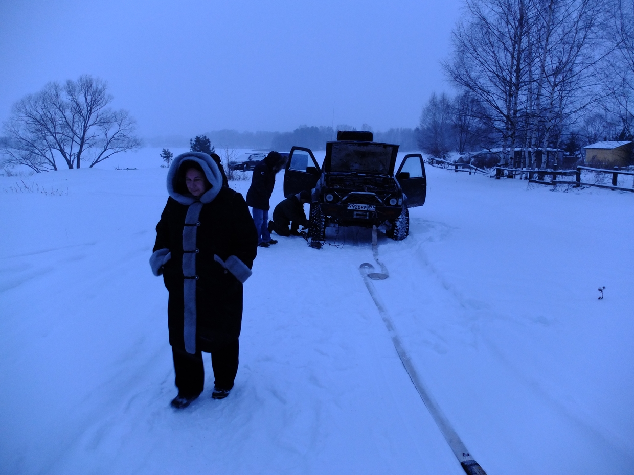 Одноклубник наш, Саша Непаджеро стоит на льду, коробка без масла. В деревне нет лёгкого буксира, а тяжёлый на лёд боязно гнать.