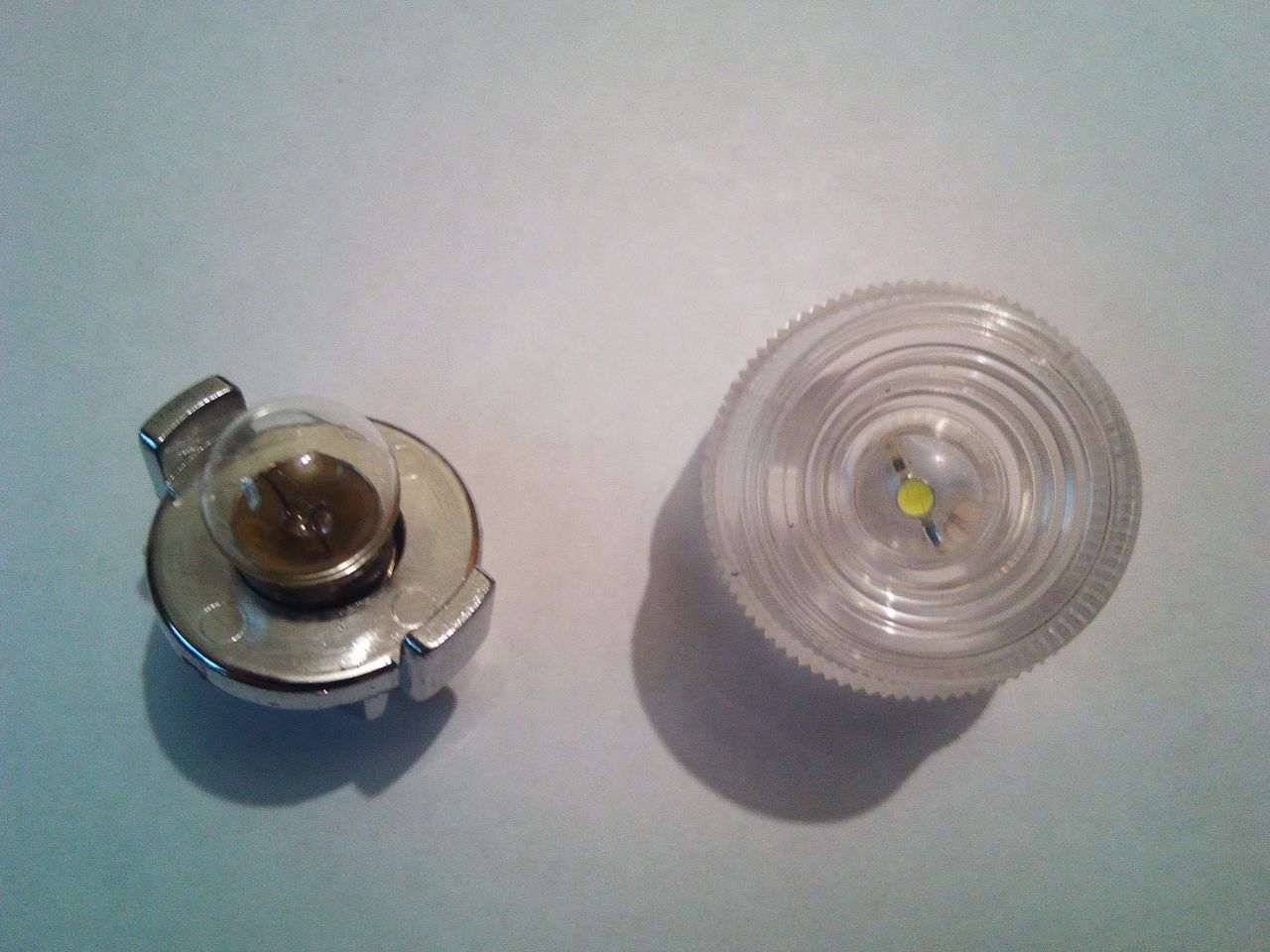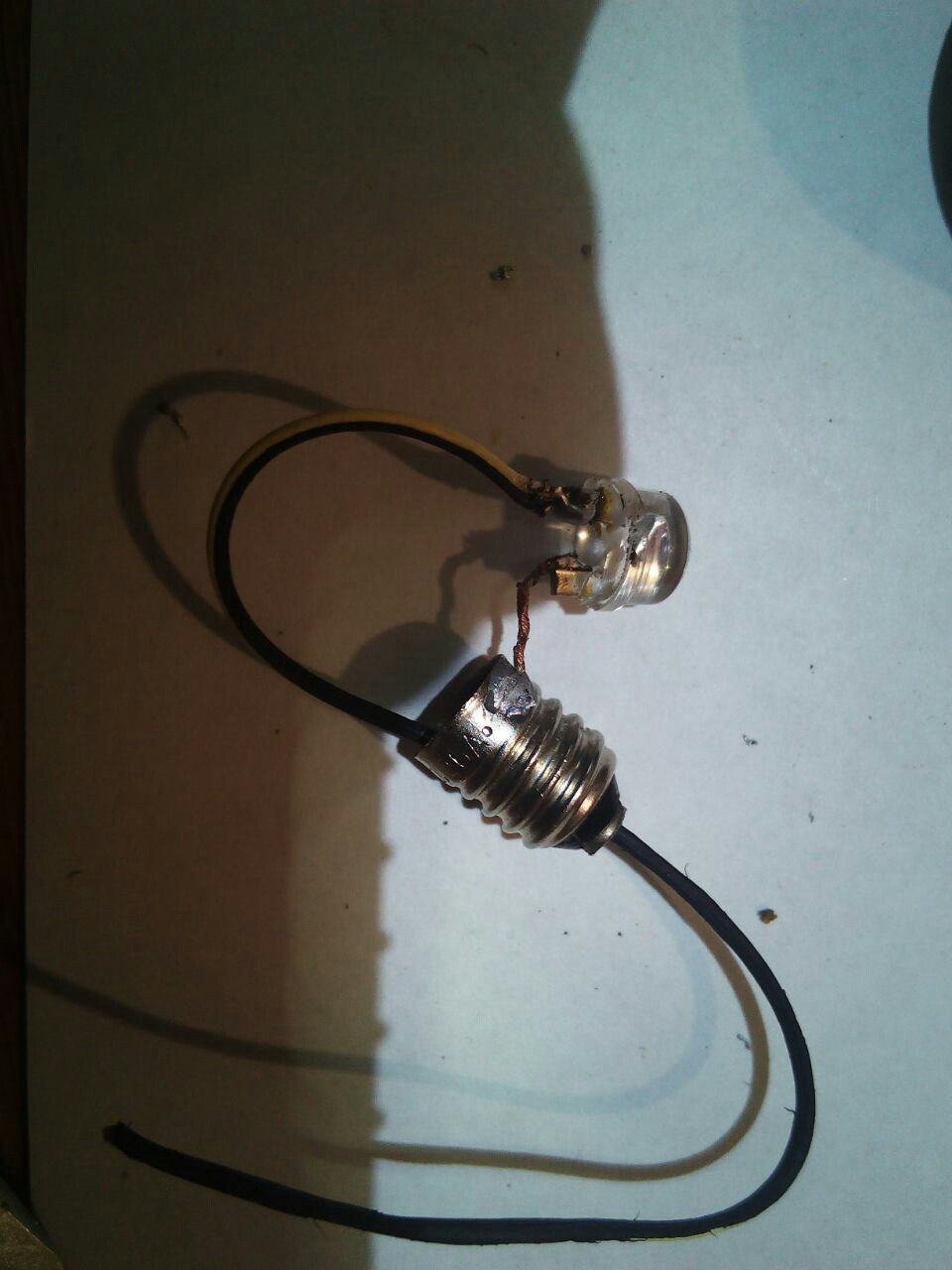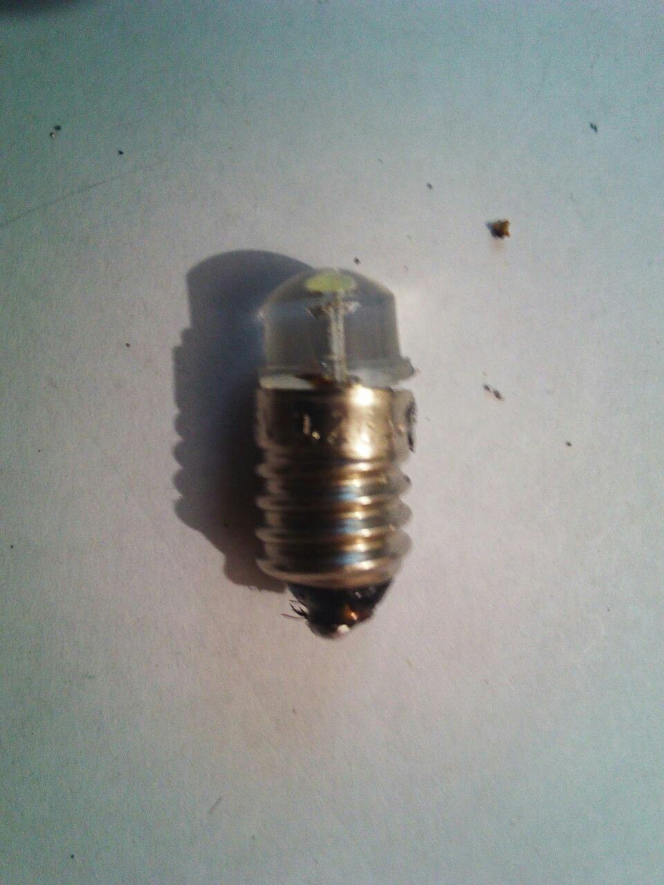 Привет всем. Я собрал весь комплект инструментов рыскал по разборкам даже переноску от прикуривателя за 1500 заказал. Ну это уже фетишь)) вообщем искал я лампочку в фонарик никто не знает что за лампачка и где её достать вообщем решил я заколхозить светодиод фото прилагаются может комунибуть поможет. купил лампочку разбил припоял к контактам светодиод и поставил, получилось так будто с завода)))