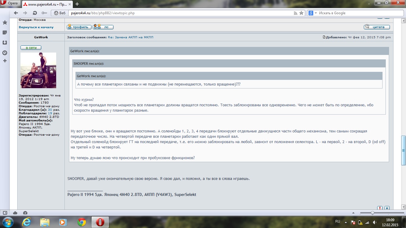 Но это не суть. Вопрос стоял - есть ли прерывание момента на колеса при переключениях в АКПП. Снупер перешел на личности, а докозательств прерывания не предоставил. Не понимаю этого человека. Смысл оскорблять? Просто предоставь доказательства обратного. Выставляет свое мнение за истину...