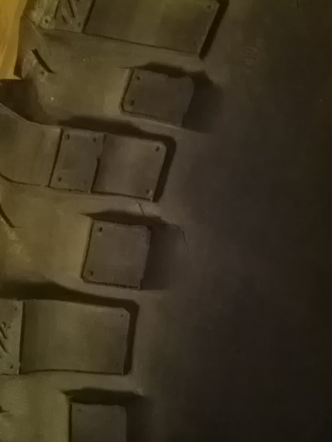 На шинах есть трещинки по границе боковых грунтозацепов, но не глубокие, ни одно колесо не спускает.