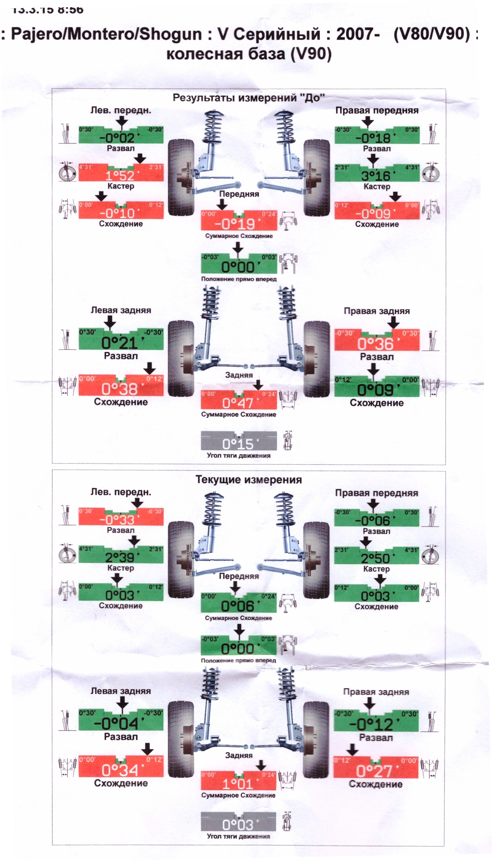 Г.в. авто - 2007 (декабрь). Развал-схождение (на изображении) сделано 5 дней назад. Болты - открутили те, что смогли (их меньшинство, какие - не знаю). Больше половины болтов (вроде, и передних, и задних) отвернуть не смогли.