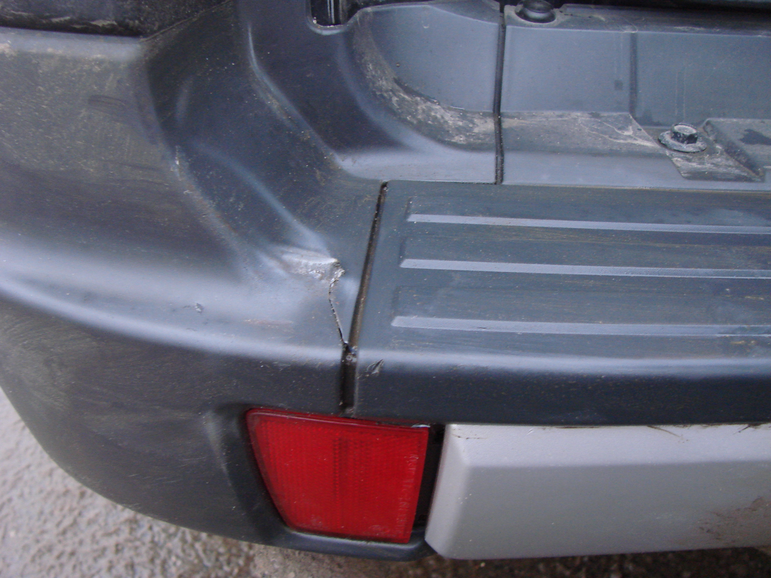1. Треснута левая половина заднего бампера.