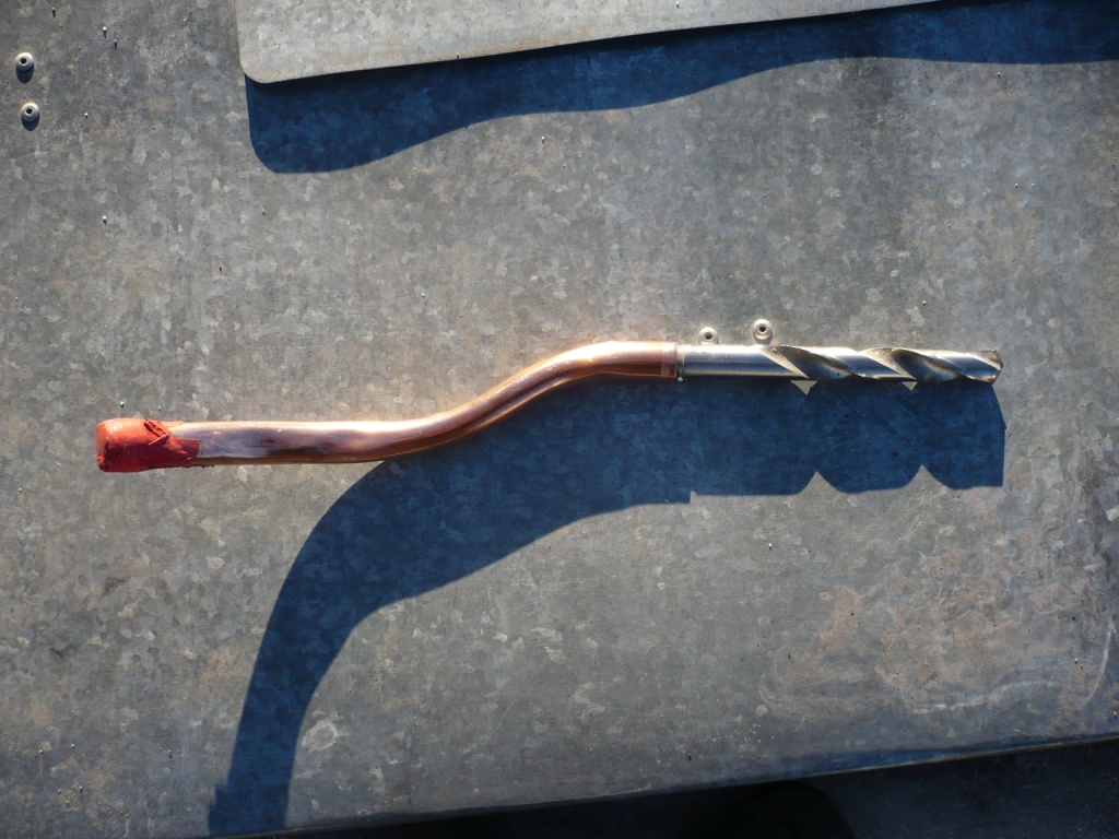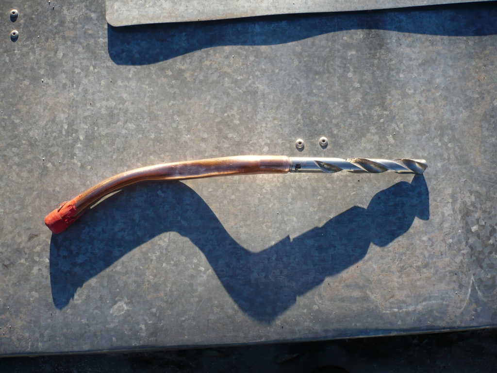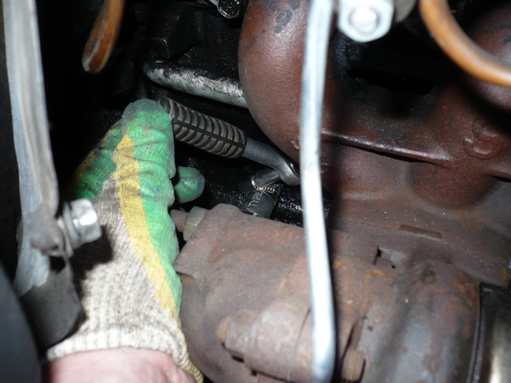 Затем разобрал и помыл по возможности моторный отсек. Раз пошла такая пьянка, решил установить подогреватель ОЖ, для чего вывернул сливную пробку из блока цилиндров и вкрутил штуцер из комплекта для установки подогревателя Северс-М. Сам подогреватель с установленным кронштейном крепления из того же комплекта. Закрепил подогреватель к подкрылку правой стороны болтом крепления шлангов. Возникла проблема, соединить подогреватель и штуцер на блоке, минуя выпускной патрубок, и не сделать петлю-замок. Решил использовать кусок медной трубки диаметром 15 мм, выгнув ее как на фото. Чтобы трубка не согнулась с перегибом, наполнил ее плотно мелким песком (цементом). Одел кусочки армированного шланга 14 из комплекта подогревателя, закрепил хомутами. В шланг к подогревателю вставил пружину (из того же комплекта), чтобы при изгибе малым радиусом шланг не смялся. Самое «удобное» было это затянуть хомут на штуцере (жесть, но глаза боятся, а руки делают). Соединил. Ура!