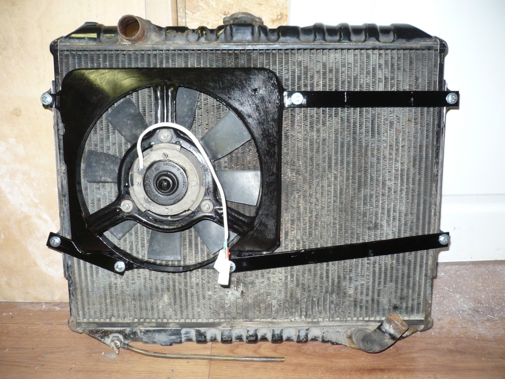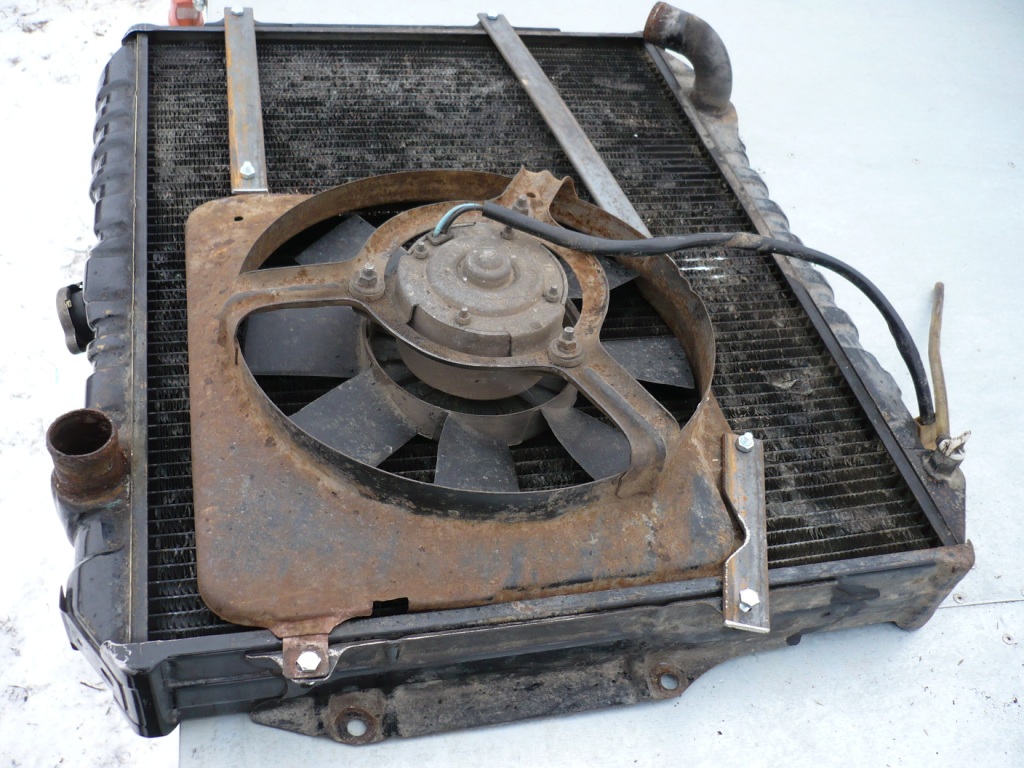 Затем подошло время установки электровентилятора на радиатор охлаждения ОЖ. Сначала очень хотелось впендюрить Волговскую рамку с Лузаровским вентом… как ни пихал, полтора сантиметра было не убрать.