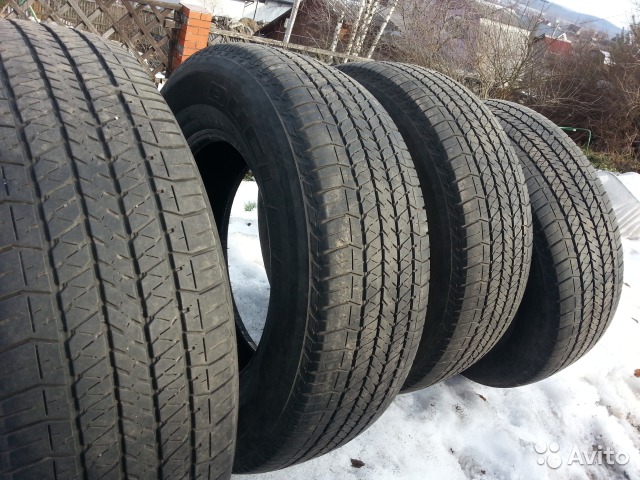 Я продаю свою стоковую резину Bridgestone Dueller H/T 684II, размером 265х65х17 стоявшую на машине с 2011 года (при покупке авто): Остаток протектора 6-7 мм по всем 4-м колесам. Проколов, порезов, грыж и прочего нет. Резины хватит на 1 сезон. Цена за весь комплект - 7 500 руб. Может быть, кому-то пригодиться.