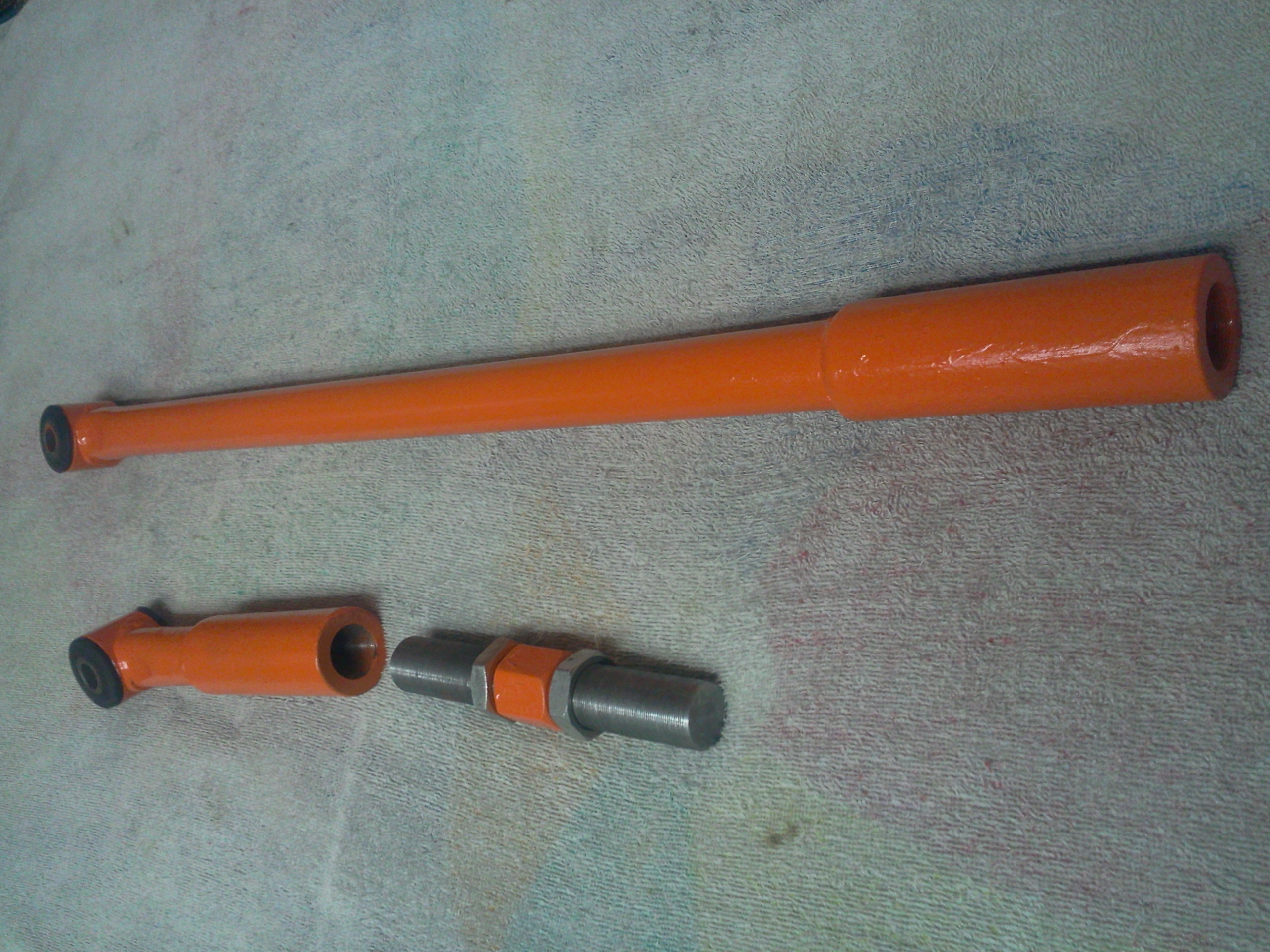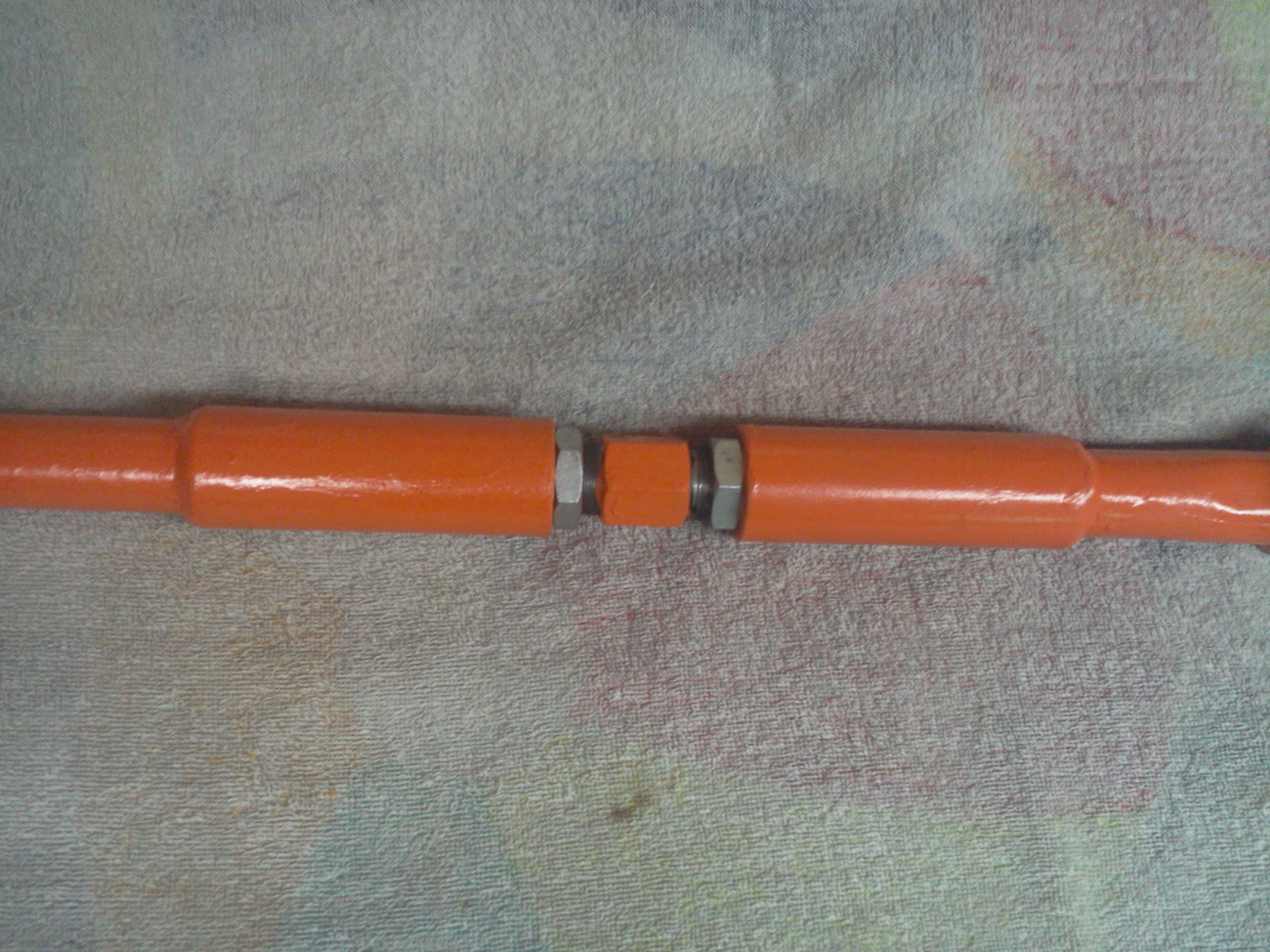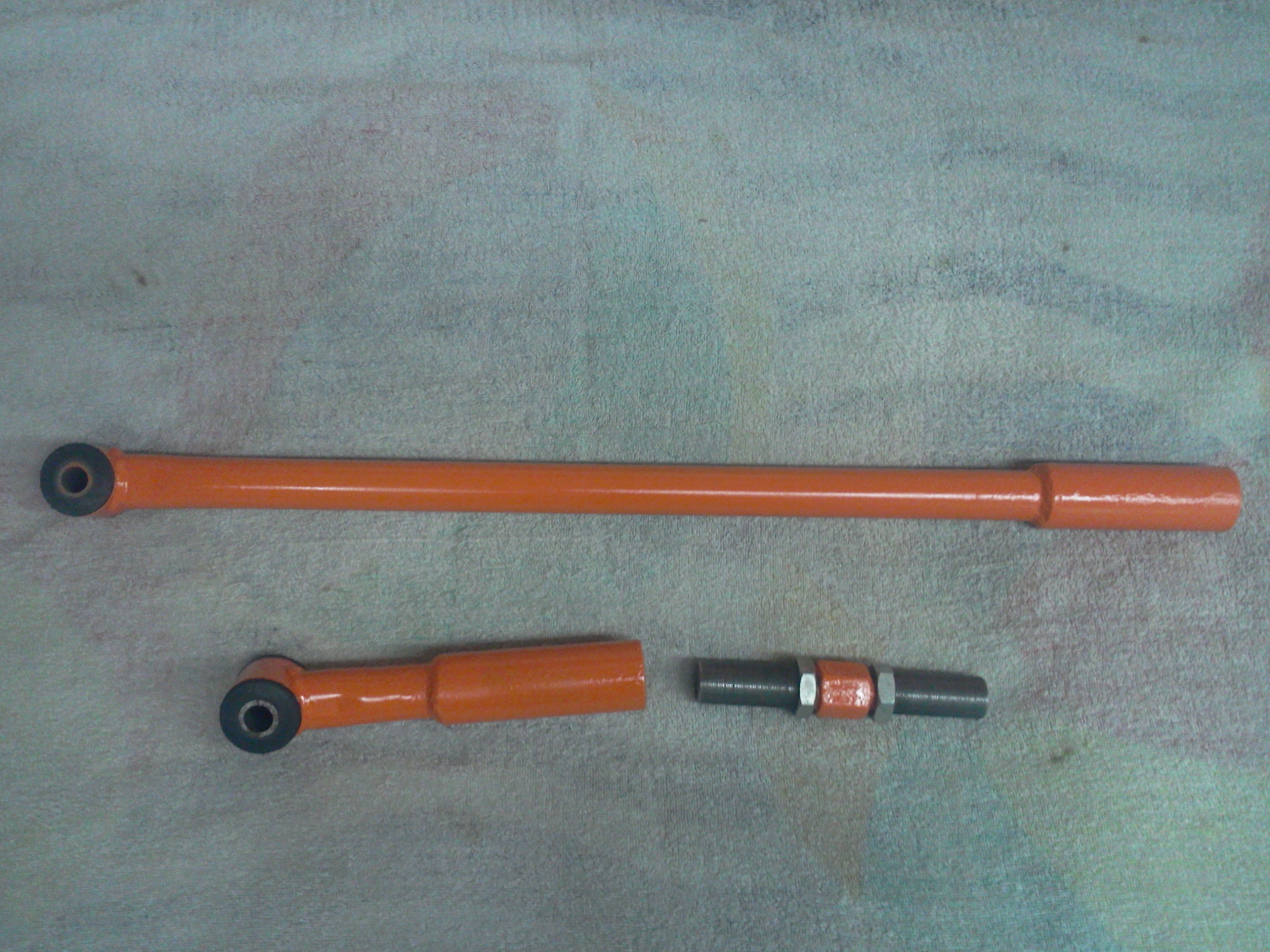 Шток выточен токарем. Втулки тоже. Внутренний диаметр втулок 32мм, внешний диаметр тяги тоже 32мм. Тяга входит плотно на 60мм во втулки и обваривается. На остальной части втулок резьба лев. прав. Диаметр резьбы 26 мм,мелкая. Из тяги вырезается кусок 160-180мм. Вариант с рулевыми от ВАЗ-2108, 2110 не понравился.