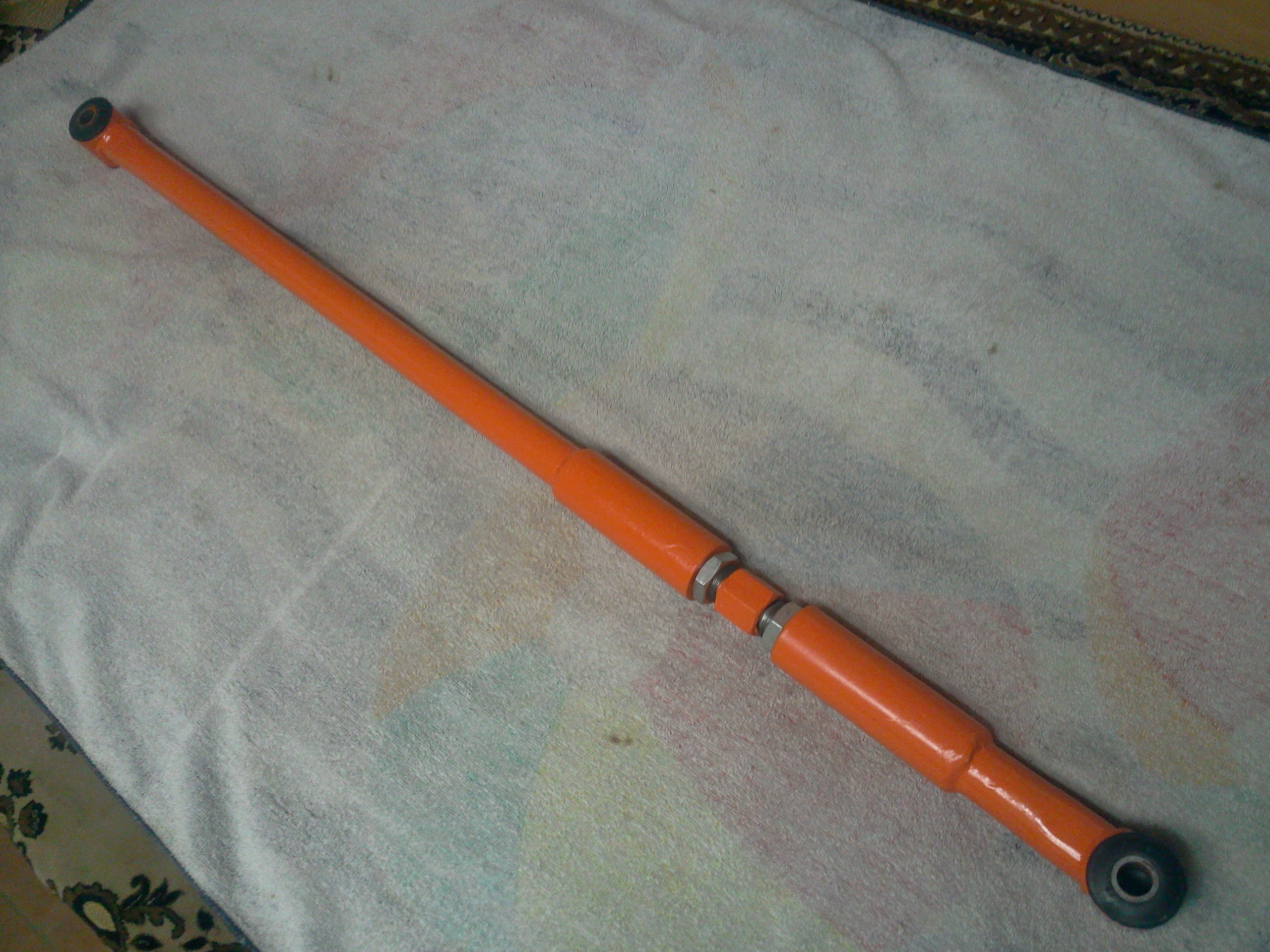 Собственно, после замены штатных задних пружин на Каябу RD 5963 от П2 и других доработок с подвеской, на регулировке сход-развала обнаружился небольшой сдвиг заднего моста вправо (9мм).Не критично, но... Пришлось переделывать тягу ПАНАРА на регулируемую. Получилось вот так. ,!