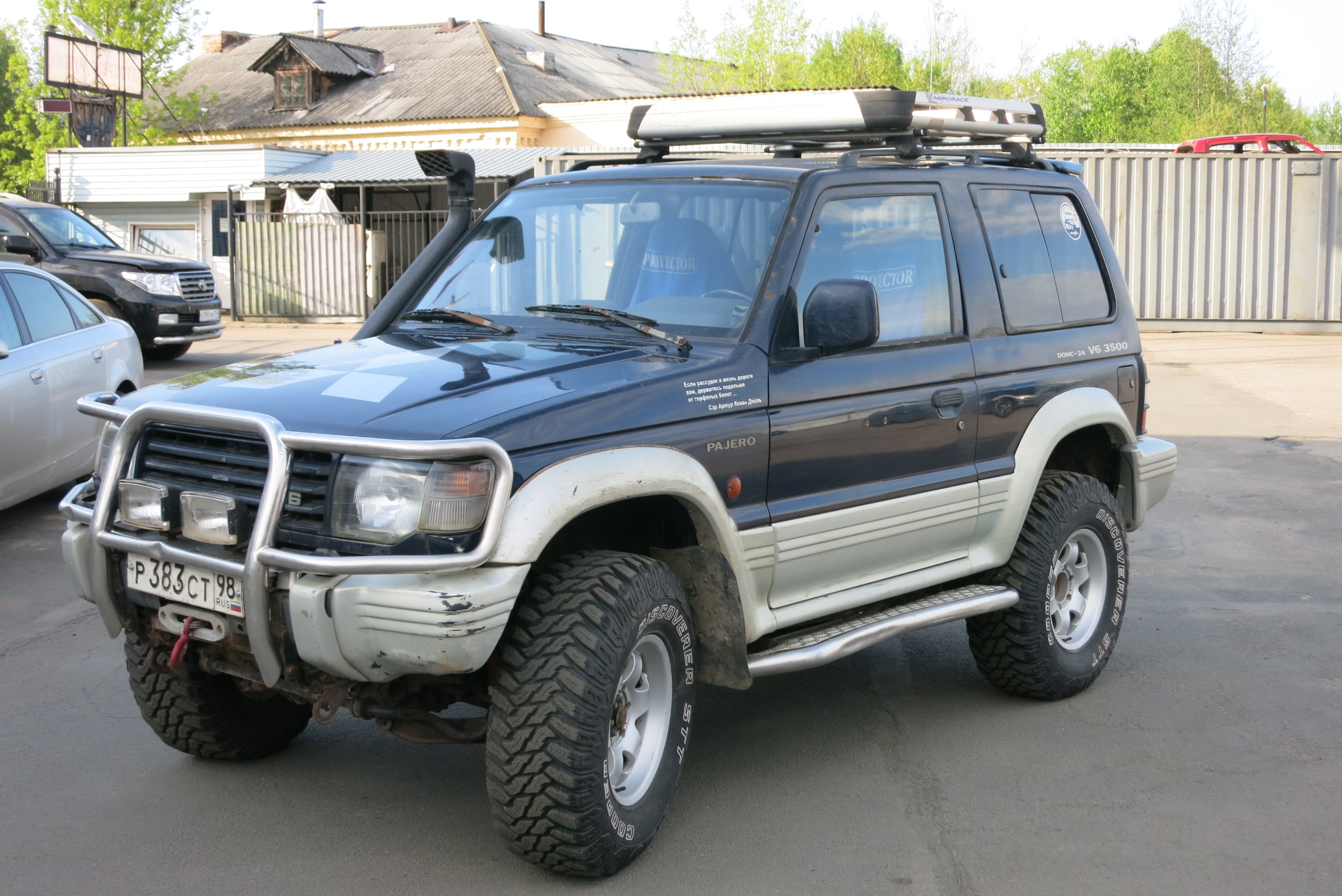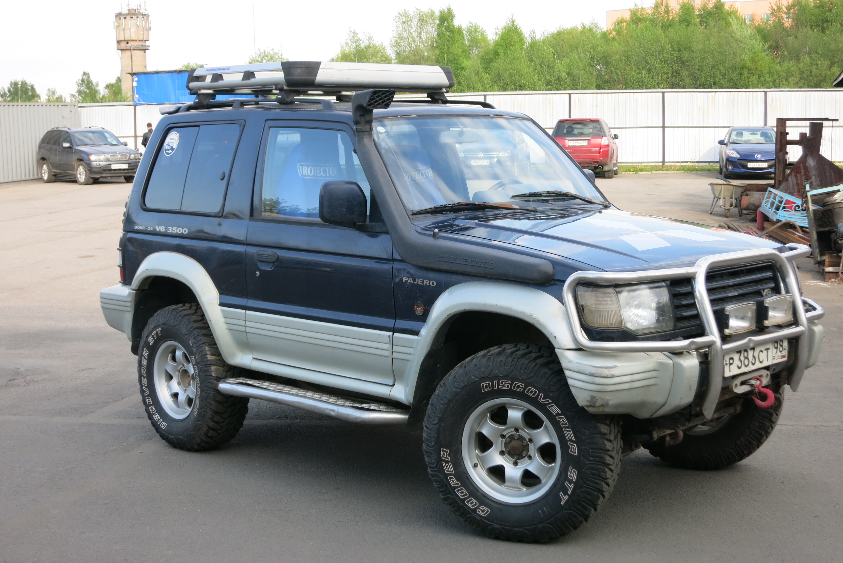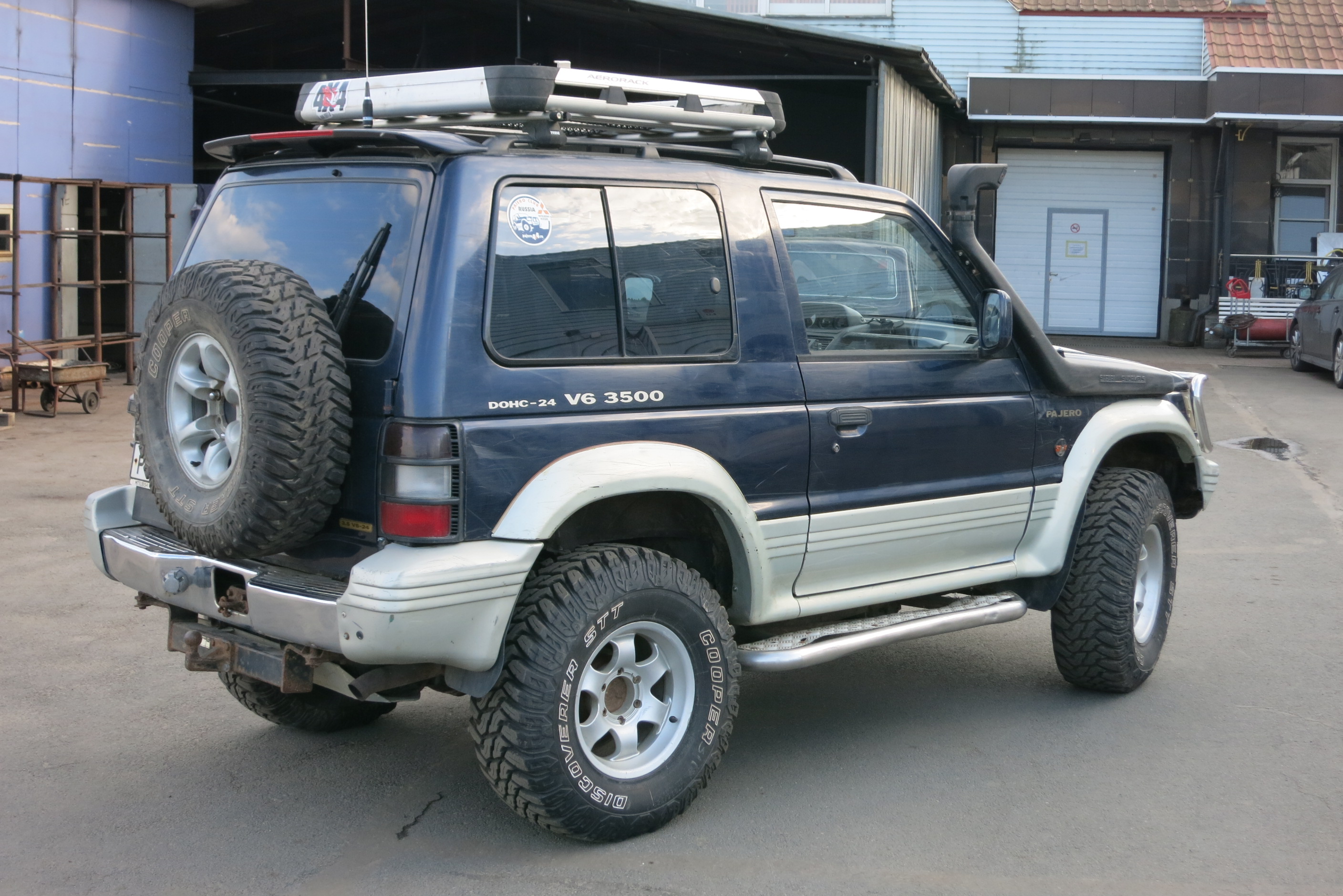 94 год, 3,5 л. АКПП, Super Select, блокировки межосевая, задняя, все работают, шноркель Safari, лебедка Master Winch 8500 синтетика, рация MegaJet 600 turbo, пневмо-ресивер с гудком и подкачкой колес, защита днища - лыжа от переднего до заднего бампера дюраль 6 мм, пороги силовые с креплением к раме.