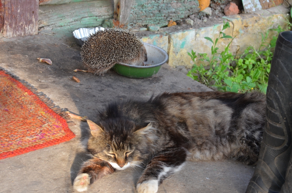 сегодня утром вышел из домика побросать спин перед отъездом домой. за мной кот, который всегда приходит, когда я приезжаю в деревню (иногда ловлю удочкой ему мелочь, которую он сам снимает с крючка - потому нервно реагирует на удилище и не отстает, ходит следом.)