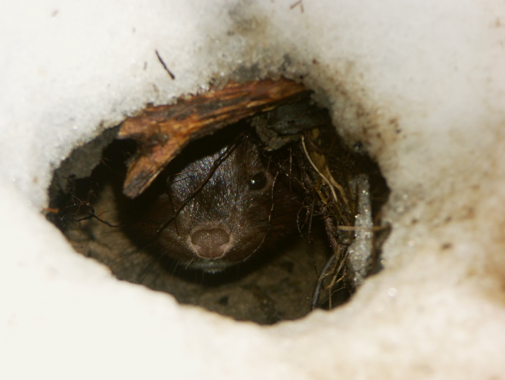 На зимней рыбалке. Ссылки в хронологическом порядке, как дело было. Сразу скажу, норка не домашняя, самая, что ни на есть дикая. Услышал шорох в кустах, успел вытащить и включить мобильник.