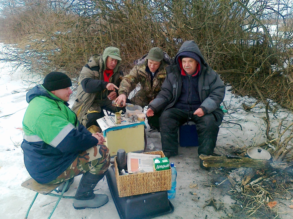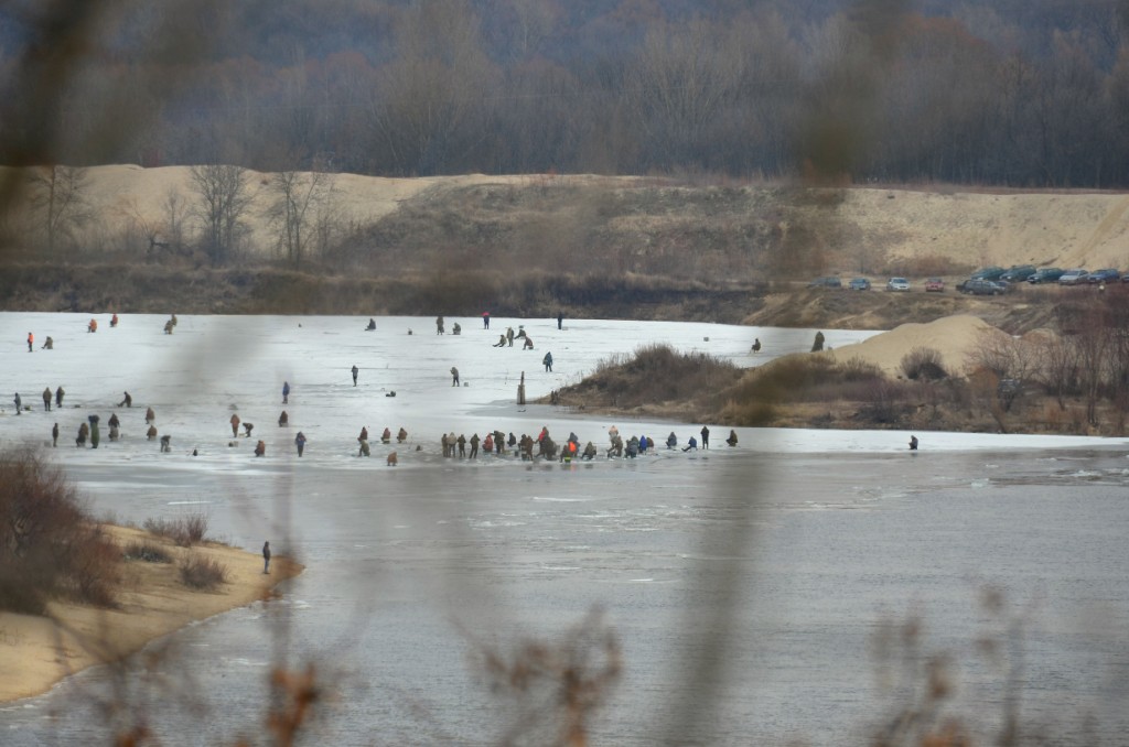 там есть часть стариков-пенсионеров, которые день посидев практически в черте города, поймают десяток плотвиц, разнообразив себе питание. те осторожнее, понимая, что не выплывут. но немало и молодых, уверенных в себе и своем "знании" всего... да и зачастую нетрезвых. не секрет, что рыбалка включает в себя и непременный "перекус на льду". (фото в другом месте, я в красном шарфе)