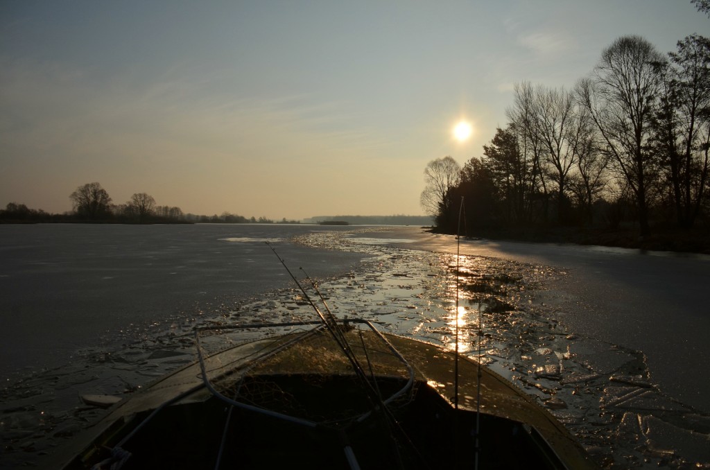 по рекам уже почти сошел лед, на заливах пока стоит. уже рыхлый, непрочный, но отчаянные рискуют жизнью за поклевку плоточки или окунька. вот у меня из окна видно: река с течением, на самом краю льда ( а там глубоко-намывали грунт для моста) рядом с течением. если лед провалиться -не выплыть, т.к. до берега далеко... я сам любитель, но такой риск...