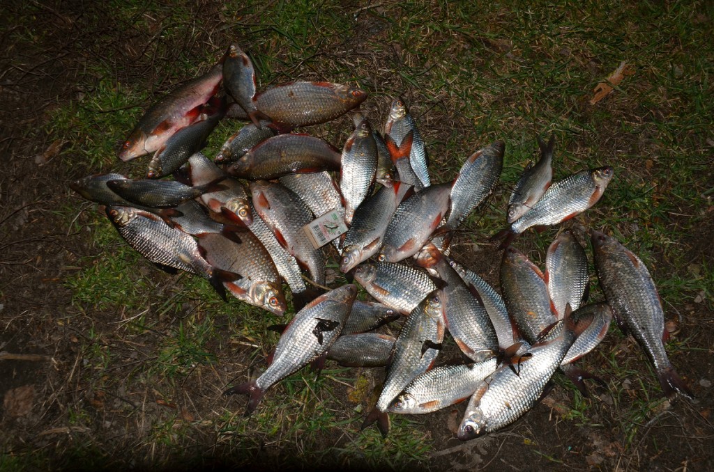 сегодня +13 . смотрю из окна - "пингвины" несколько отошли от края льда. но да чего оптимисты! я на рыбалке лодкой легко давил лед - он хрупкий, на льду только следы норок. когда снимал кадр "пингвинов" - льда, по которому пробивался - уже нет. кстати и плотва на фидер неплохая (на фото только часть улова, остальное лень было вынимать из морозилки)