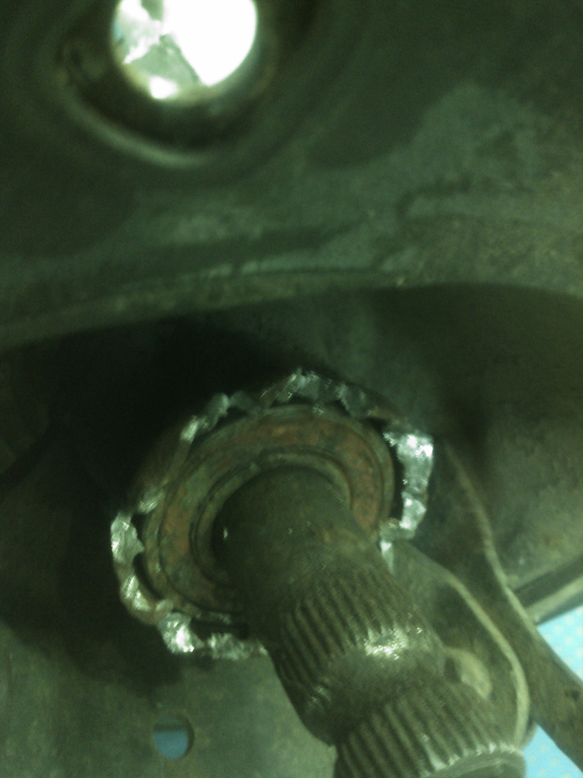 - Вынемаем из колонки подшипник. Мой вал в месте посадки подшипника был изношен. Я набил посадочное место зубилом и смазал обильно хорошим герметиком. Можно конечно посадить и на спец герметик или эпоксидку, но потом его хрен снимешь. Да и мое мнение что герметика будет достаточно, так как большой нагрузки и температуры там нет.