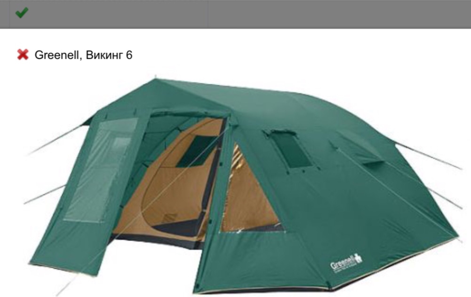 Возможно использование внутренней палатки Greenell Викинг 6 без внешнего тента.