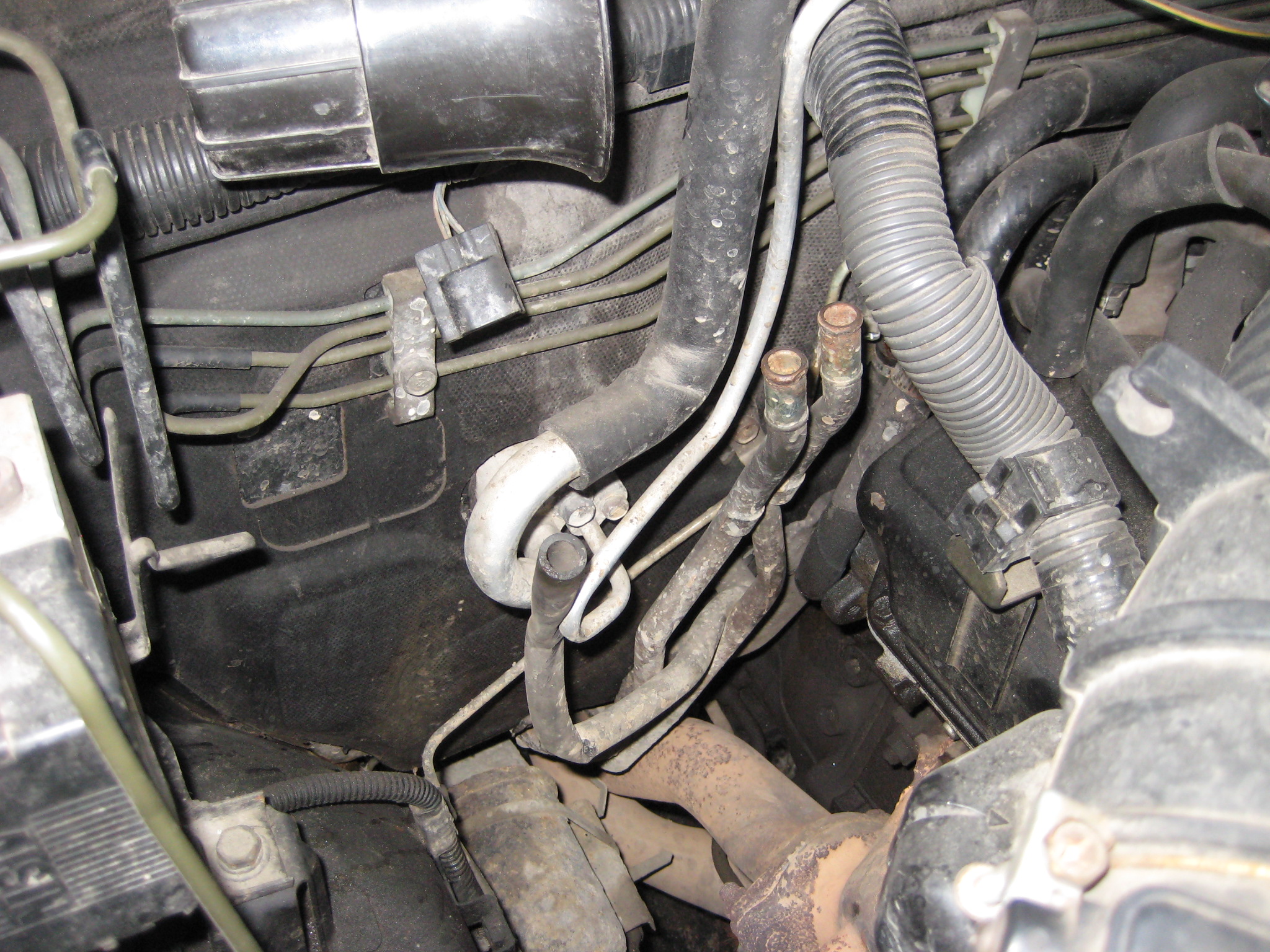 Помоги разобраться.Мицубиси паджеро спорт.3.0.АКПП.2000 г.в.Не могу понять чего не хватает:2 трубки металл.уходят под кузов я так понимаю задняя печка,но как должны начинаться? Резиновый шланг-уходит в салон.И фишка висит какая то.Может у кого есть фото.Что там вообще должно быть