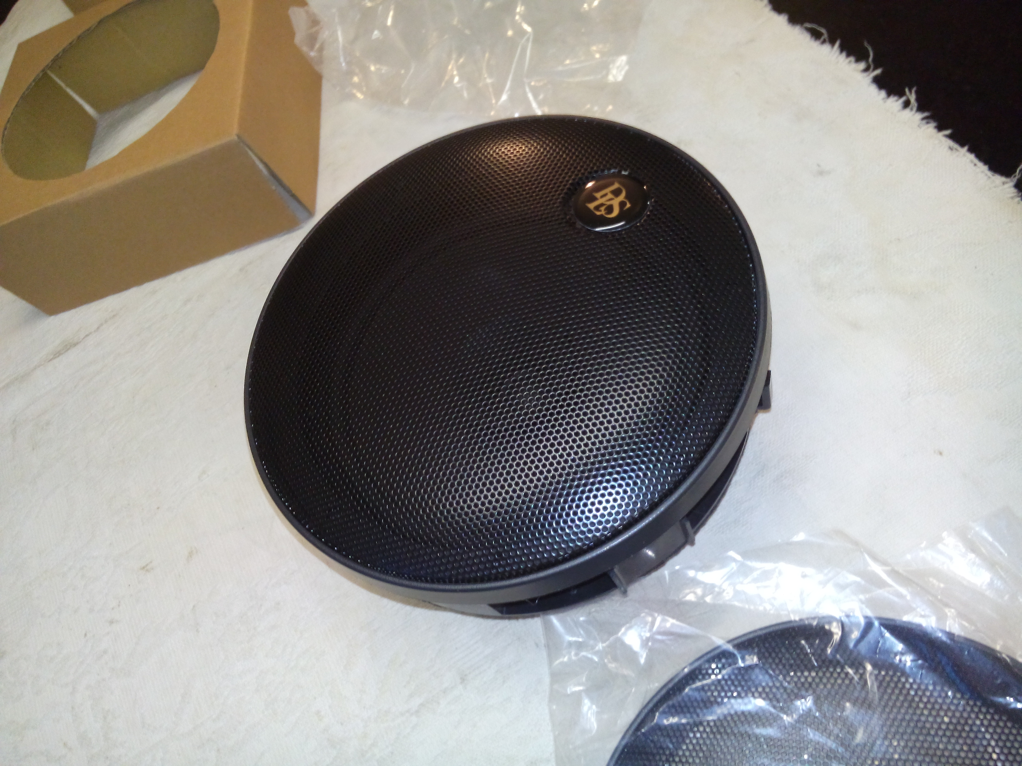 Сделал фотки, выкладываю. Динамики 16 см, ушек или отверстий для крепления у них нет, крепятся они к двери в специальные пазы вставкой и поворотом. В комплекте "пищалки". Могу отдать с динамиками, если нужно, декоративные сетки от 16-х динамиков DLS.