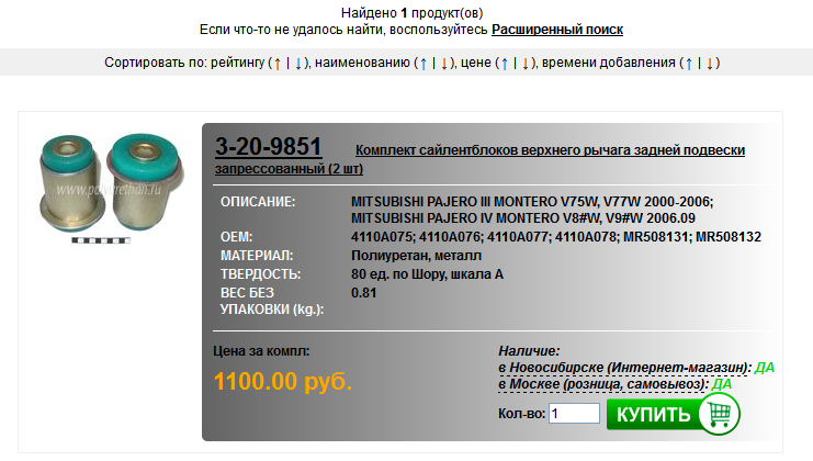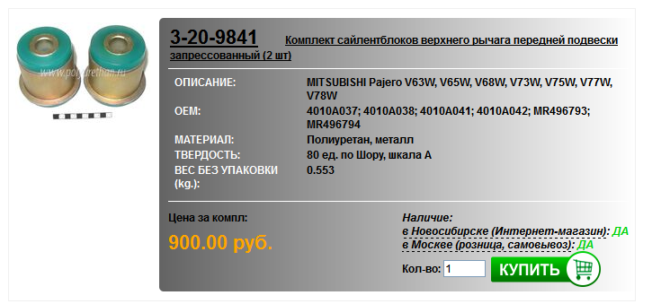 Пришла пора менять сайленты верхнего рычага передней и задней подвески. К сожалению в оригинале они идут только вместе с самими рычагами, что крайне не бюджетно. Пока свой выбор остановил на продукции новосибирской компании "Полиуретан", тем более что они уже продают их запрессоваными. Может у кого из форумчан есть опыт по использованию данной продукции? Поделитесь опытом именно по использованию в наших пыжиках (Паджеро III).