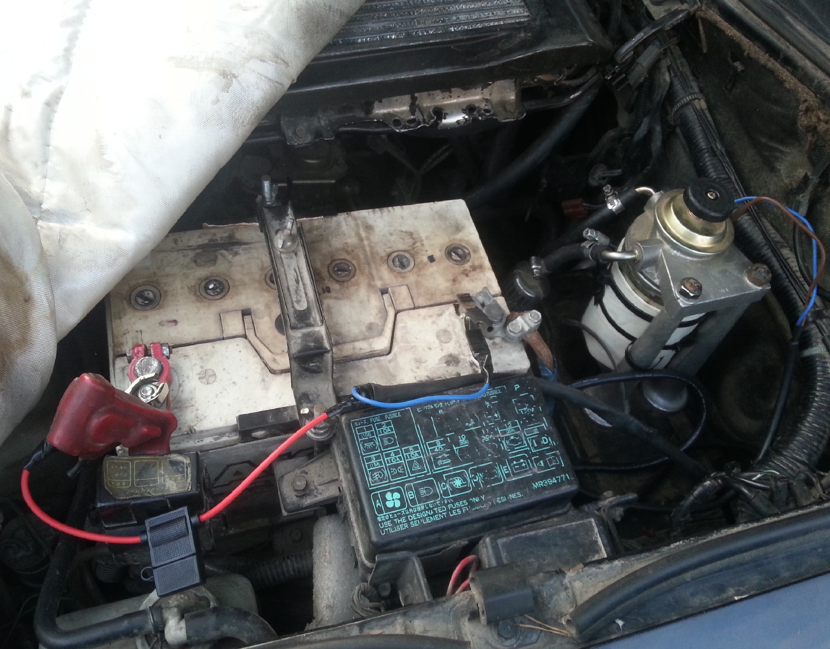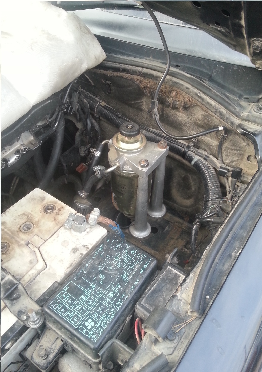 Кстати фильтр у меня перенесен на площадку 2го аккума вот так С нагревателем выглядит все это дело вот так Закрепил пока что пластиковыми хомутами, чтобы проверить, потом надо будет металл поставить.