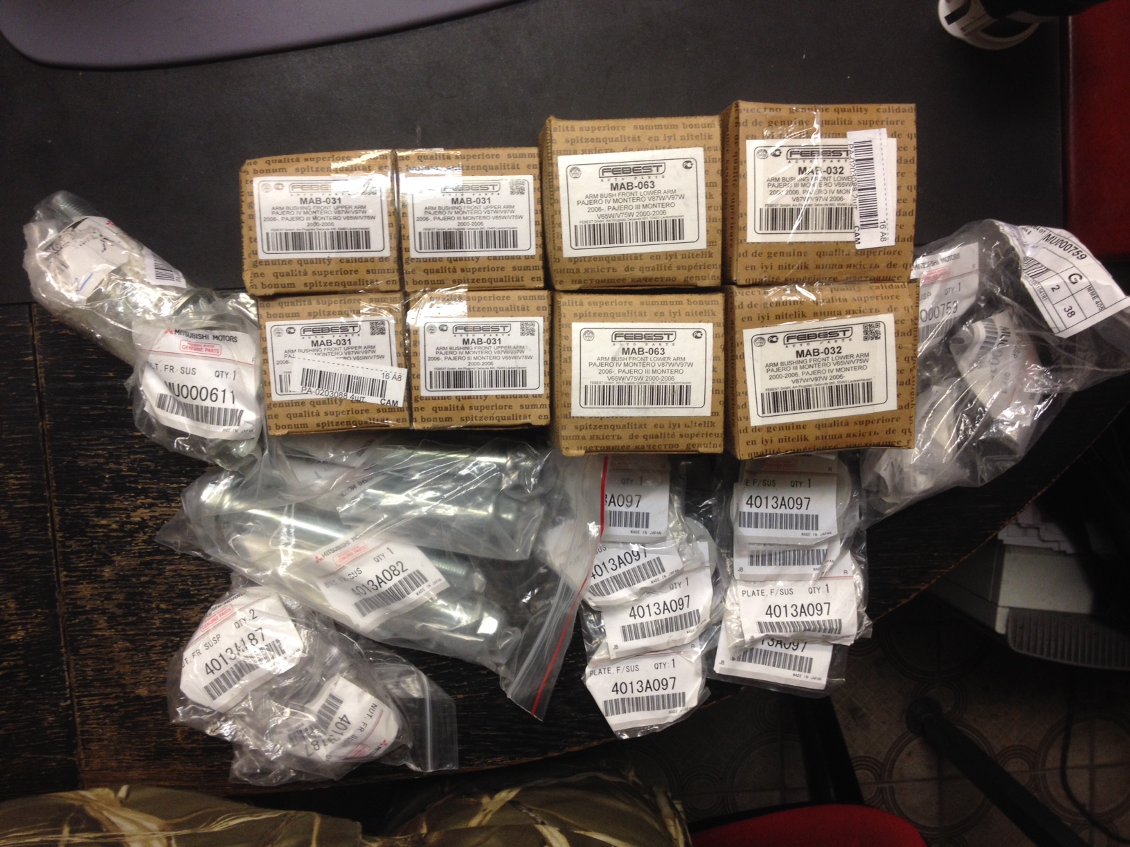 Продаю комплект сайлетблоков передних рычагов пр-ва фэбест, с оригинальными болтами-гайками-шайбами на Паджеро 4 из подписи.
