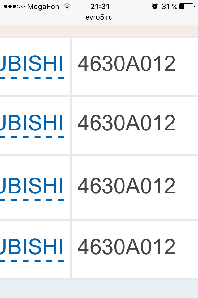 Это точная информация? 4630А011 и 463А012 взаимозаменяемые? Цилиндр 012 меняется на 011 без проблем? А то ситуация такая, купил круглую О.Д. отказался менять, не официалы тоже не хотят менять, говорят что не подходит. На коробке два номера, две наклейки, заказывал А012 цилиндр пришла А011 круглая, в одном магазине отказался, во втором тоже самое -взял. Продавцы в двух магазинах уверяют , что взаимозаменяемая.Begemot2014 писал(а):Было дело, искал неделю грушу (вовремя остановили) на Pajero-4 и тогда выяснил, что от Pajero-3 точно для нас подходят, хотя форма разная. Так для информации коллегам...