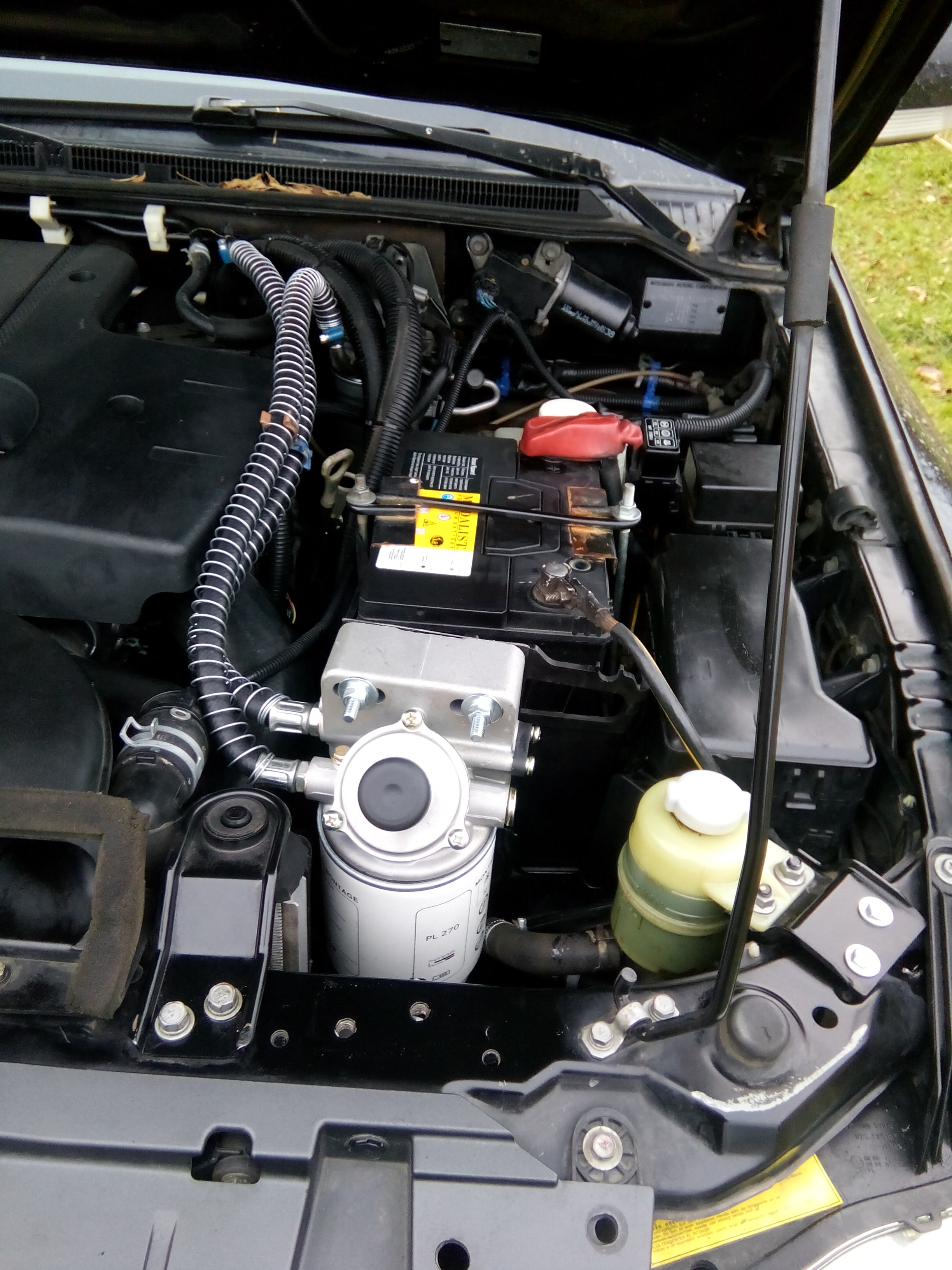 Всем привет. Замучился я от "хорошего" качества нашей солярки и решил поставить сепаратор для дополнительной фильтрации, а самое главное для отделения воды. Прикупил сепаратор PL-270 и подключил перед штатным фильтром. Для установки сепаратора пришлось перенести расширительный бачек и ГУР (Без особых проблем) На все про все ушло 3 часа с перекурами.