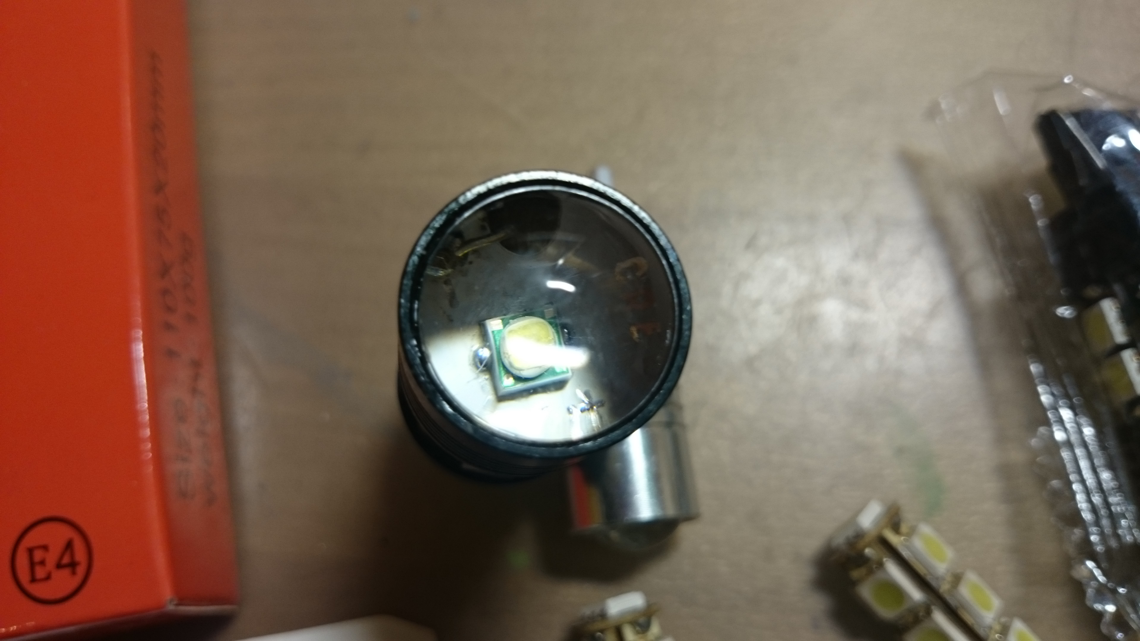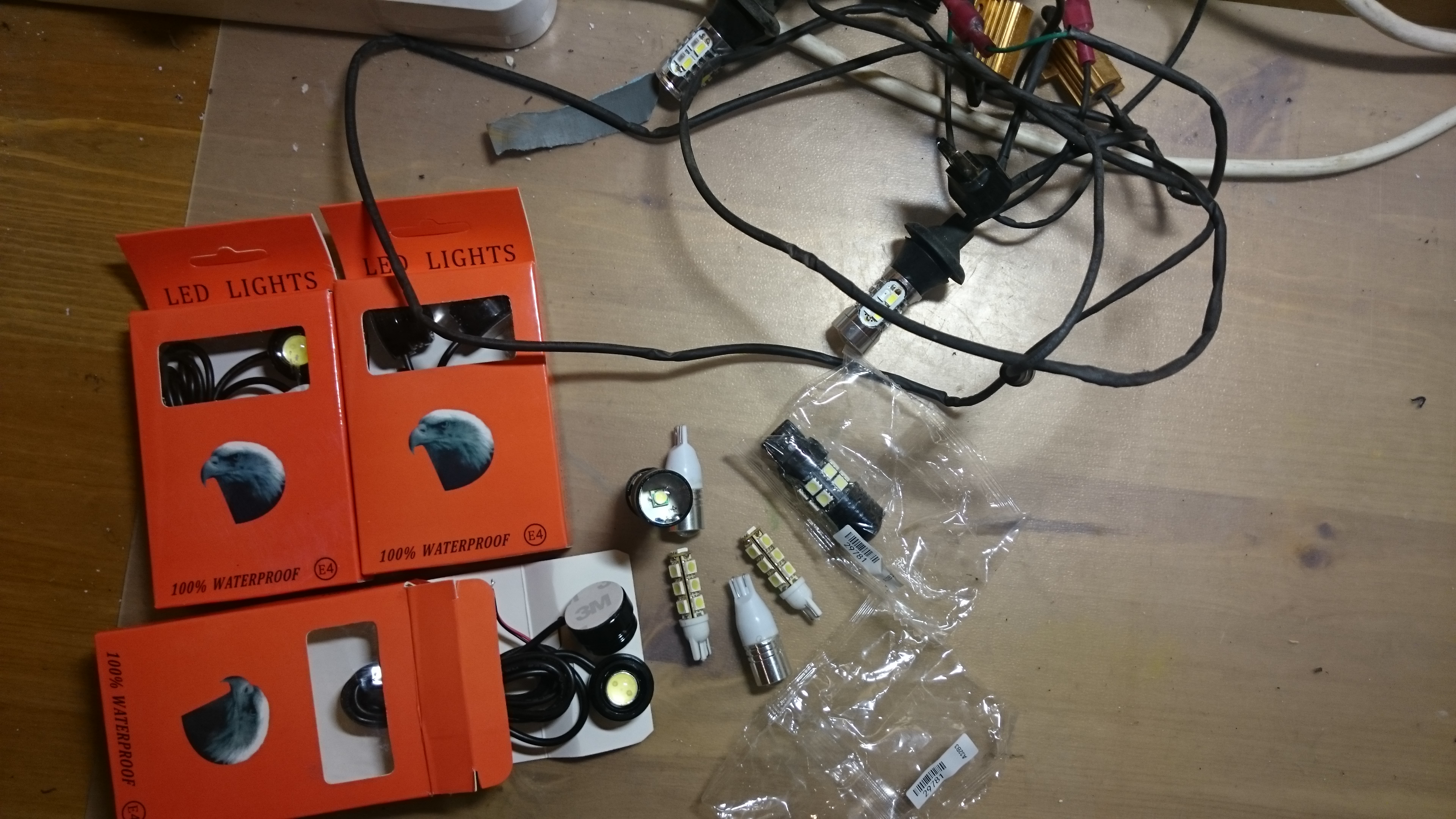 6 штук(по две в упаковке) очень ярких ламп в алюминиевом, герметичном корпусе, закрепляемые на двустороннем скотче(в комплекте)новые для организации ДХО.