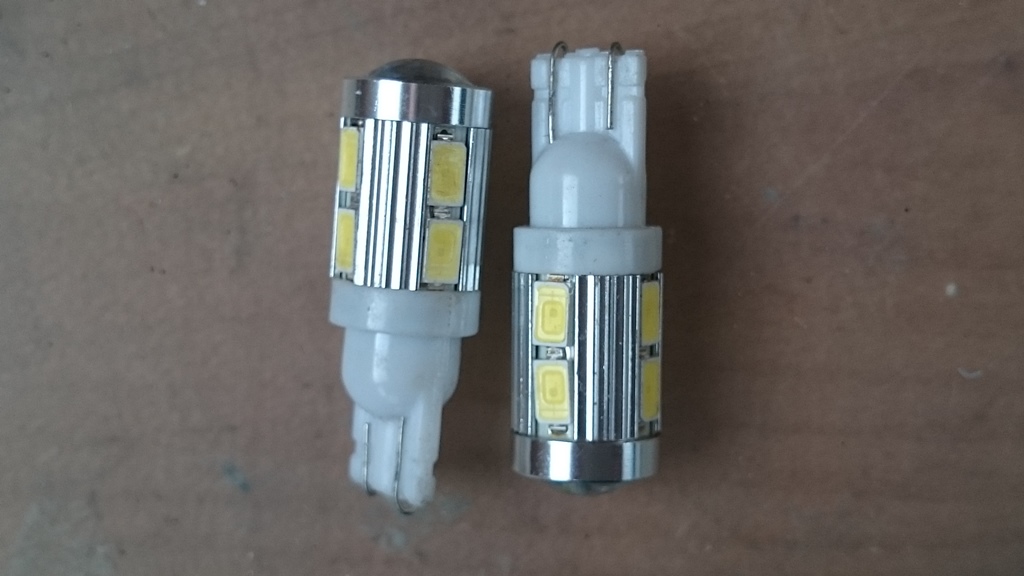 Мощные линзованые лампы в передние габариты(разъем Т10) новые;