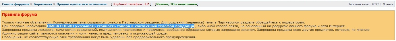 При продаже необходимо ОБЯЗАТЕЛЬНО указывать стоимость товара и контактный телефон продавца , либо иной способ связи, не основанный на ресурсах данного форума и сети Интернет.