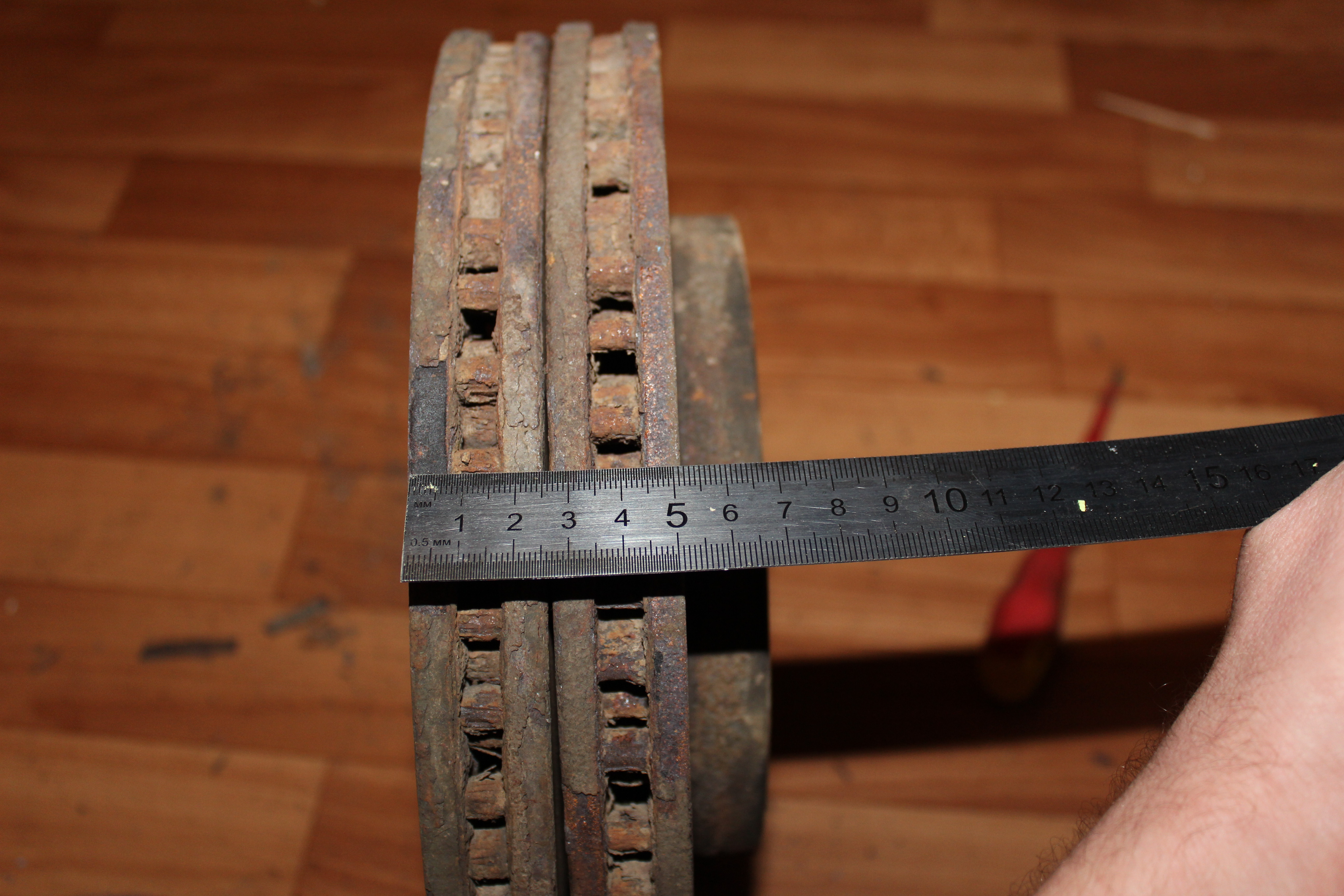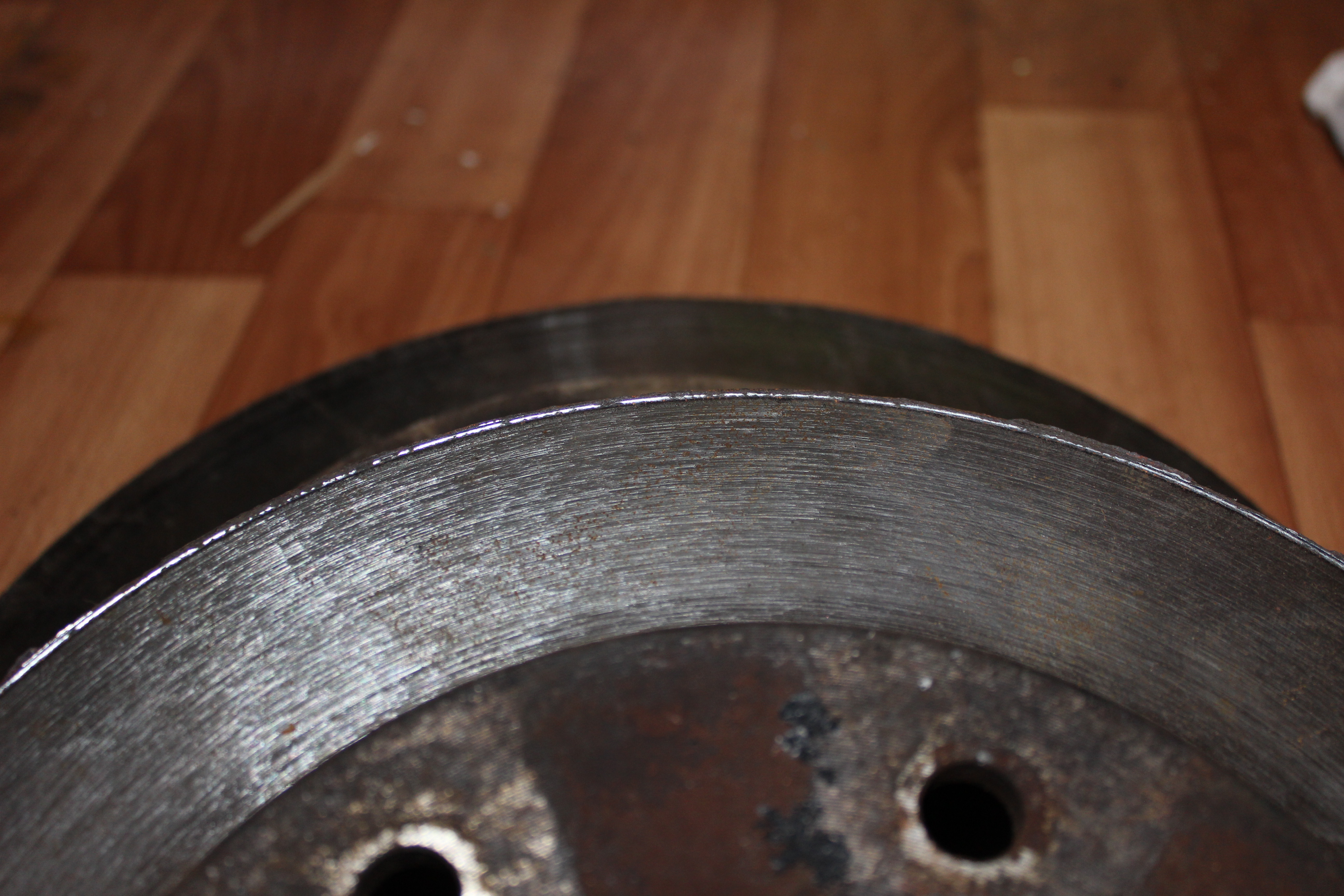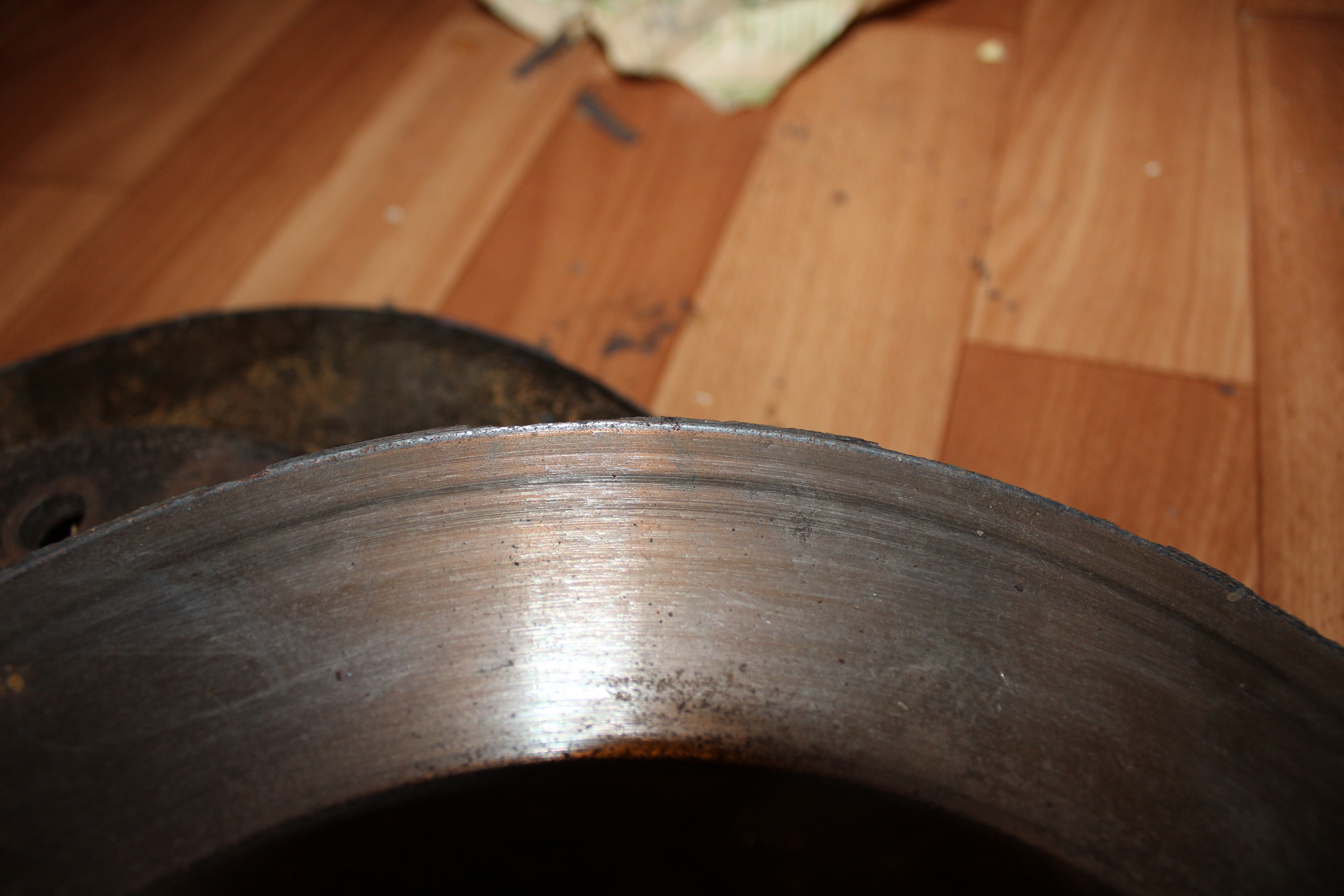 Нет у меня под рукой штангеля, но выработка реально не большая, верхняя кромка буквально в 1-1,5 мм, пытался отразить это на фотках. Просто имея новые диски воткнул их, а так местные знатоки советовали проточку сделать, но я не верю в это чудо