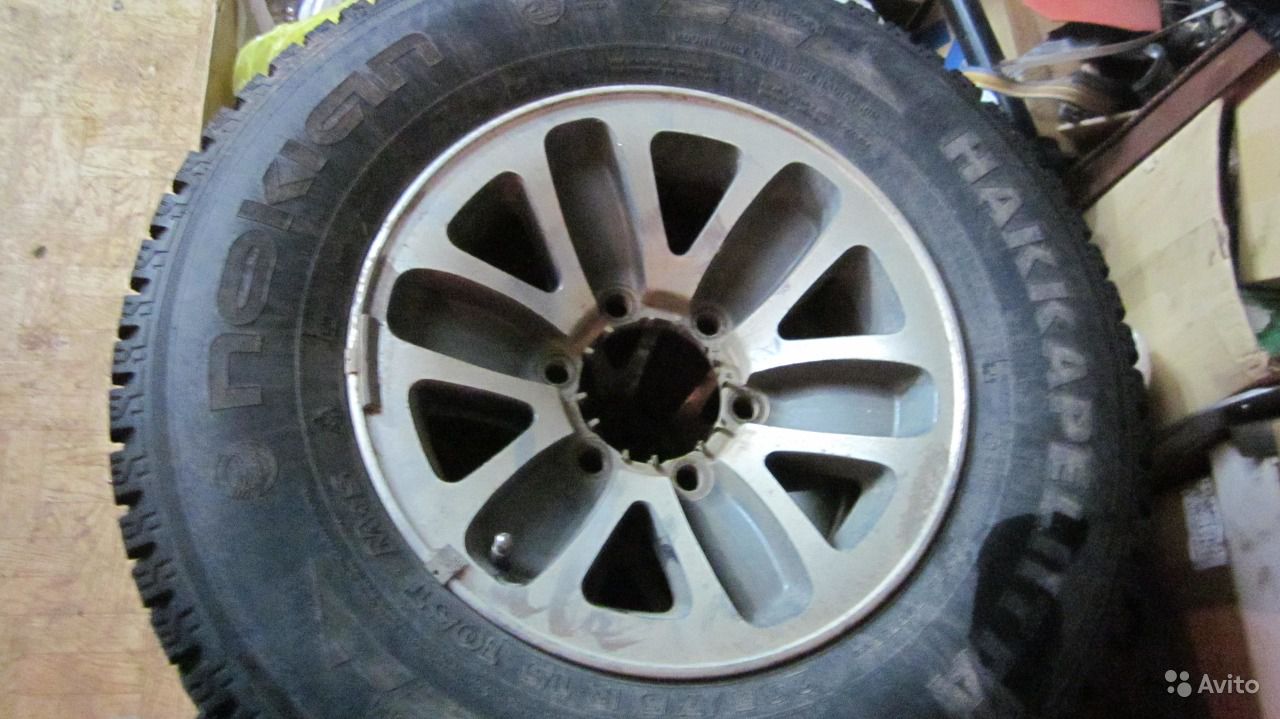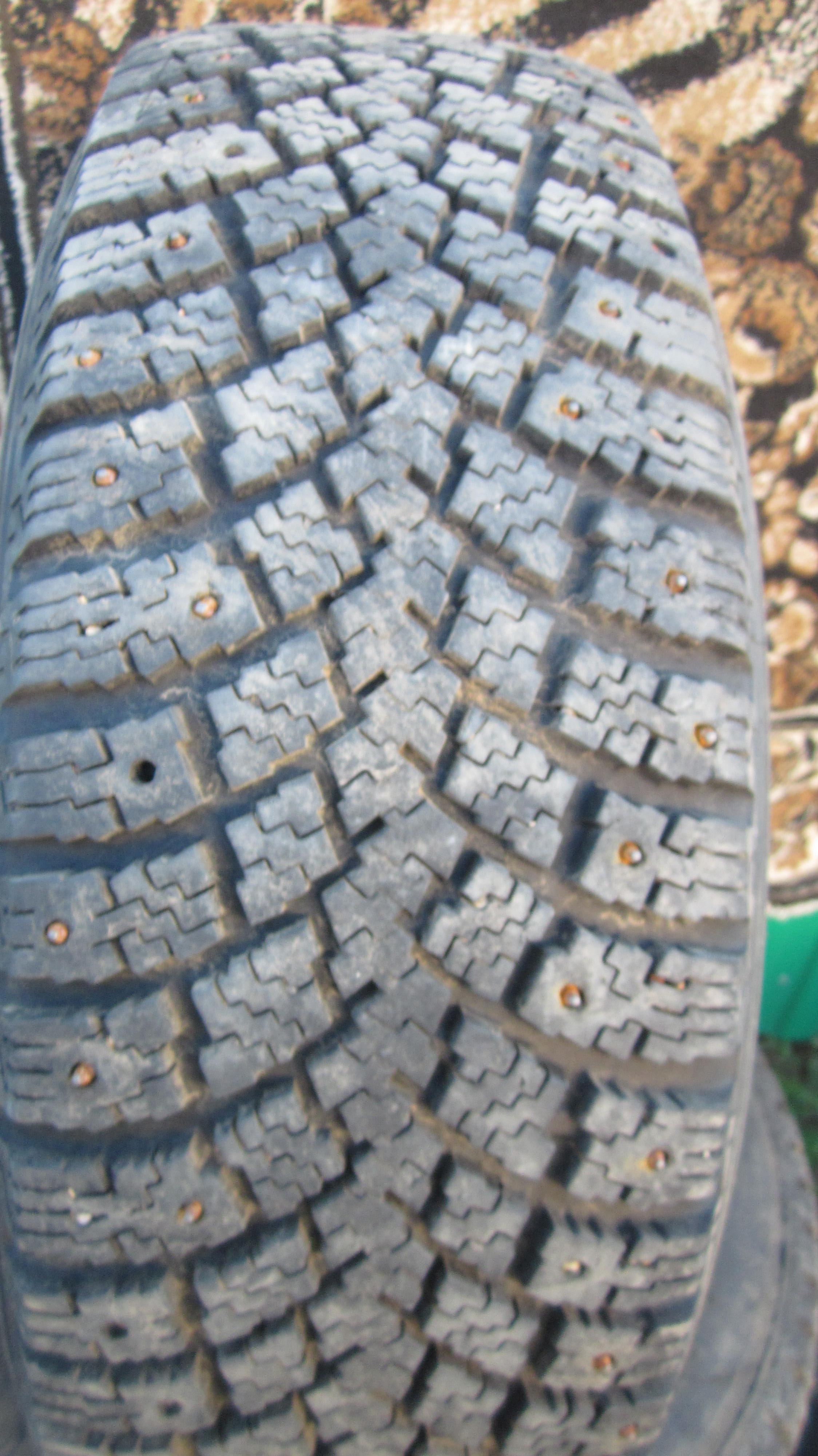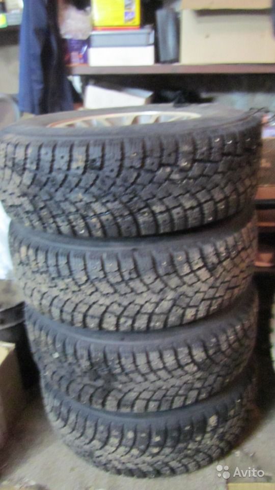Продам финские шипованные колёсики.Состояние хорошее,протектор 8мм,трещин нет,мягкая.Из недостатков:шипов осталось не менее 50%,на одной покрышке есть заваренный порез на боковине(на всякий случай собран с камерой,противоположное колесо на оси тоже с камерой для баланса).Диски "арбузы",ровные,лкм в неплохом состоянии(есть правда окислы от свинцовых грузиков).Цена комплекта из 4 колёс 16000р.Можно просто покрышки-10000,диски оставлю тогда.Тел.893748ноль818ноль Ришат.
