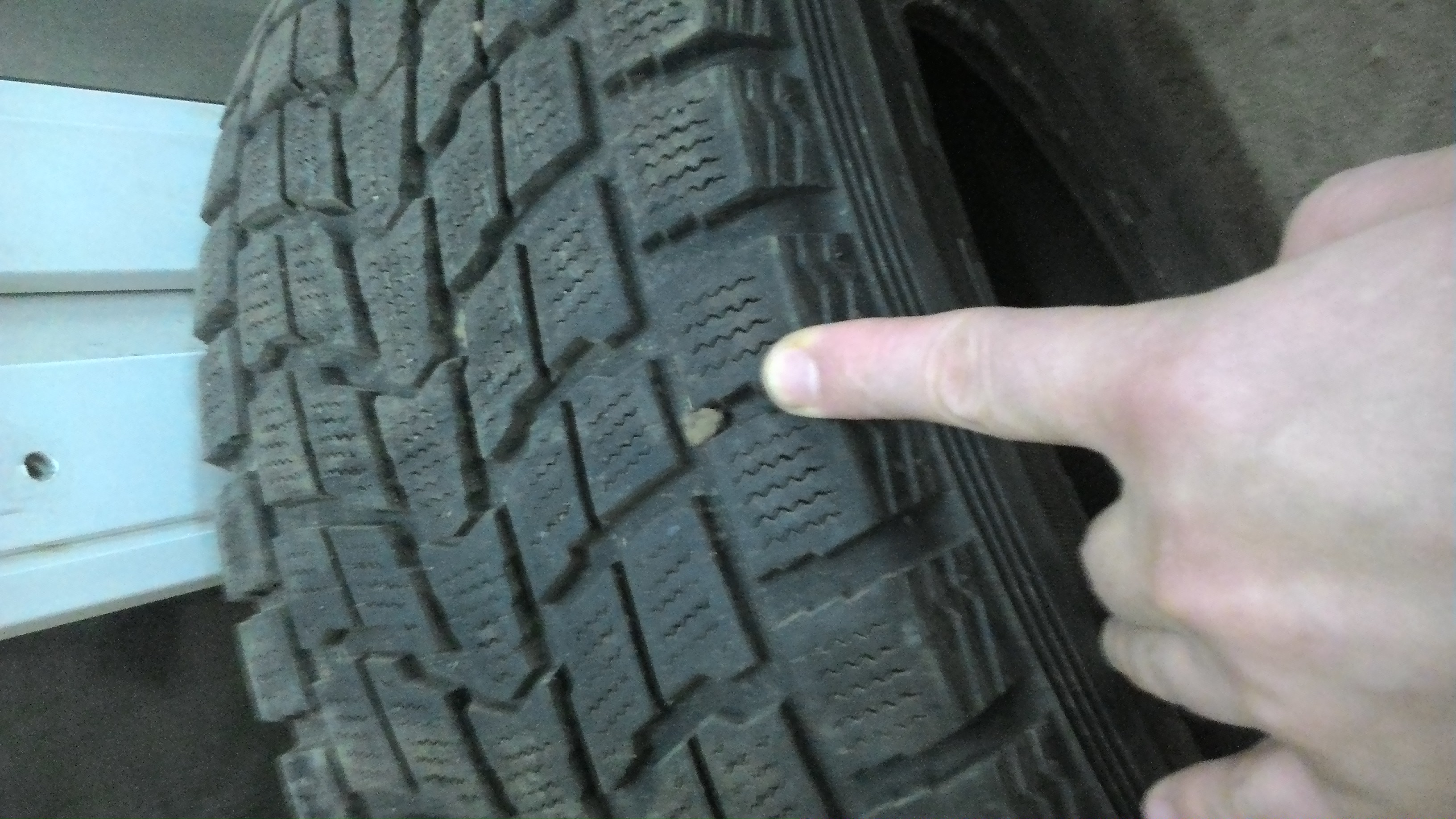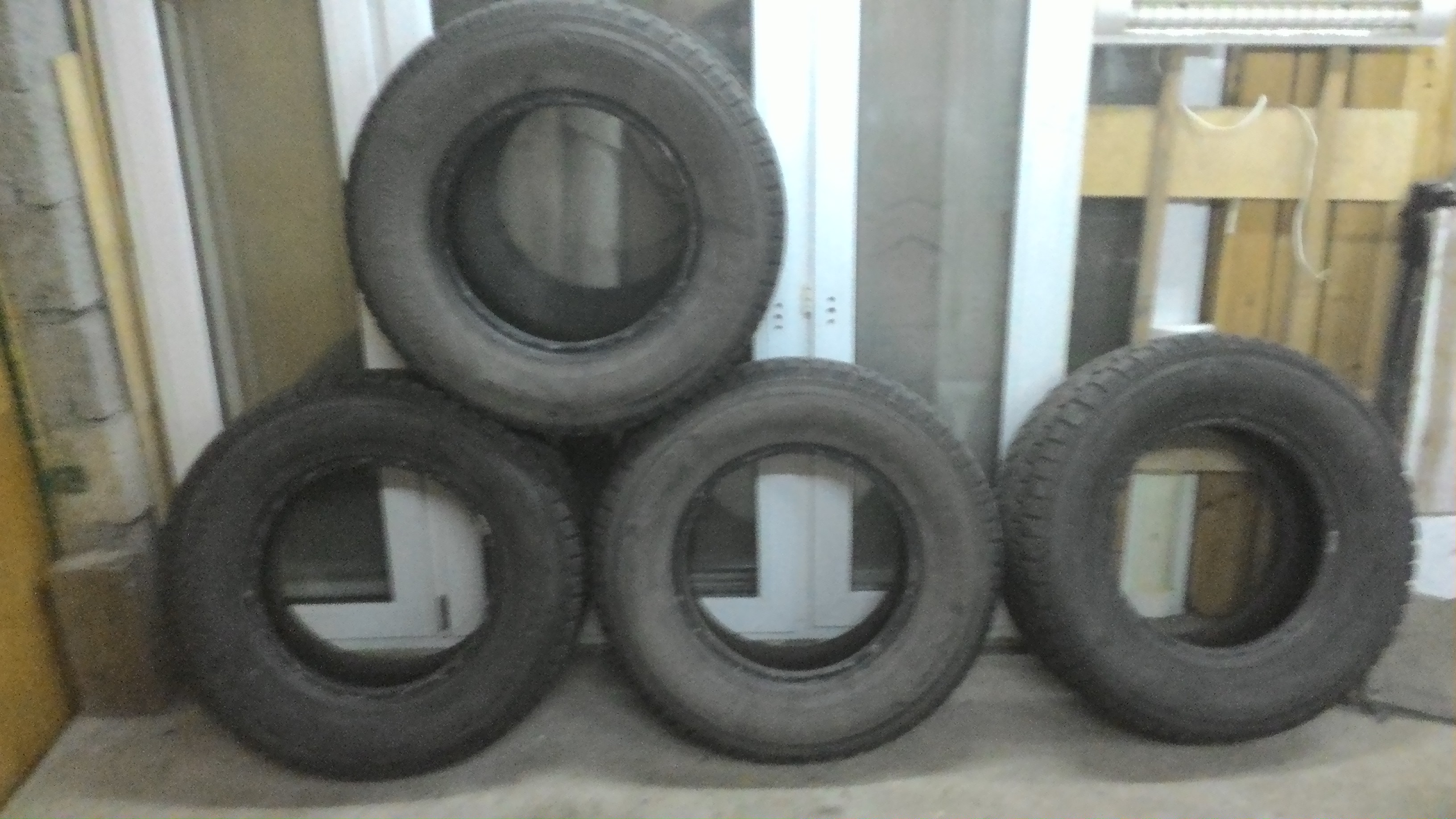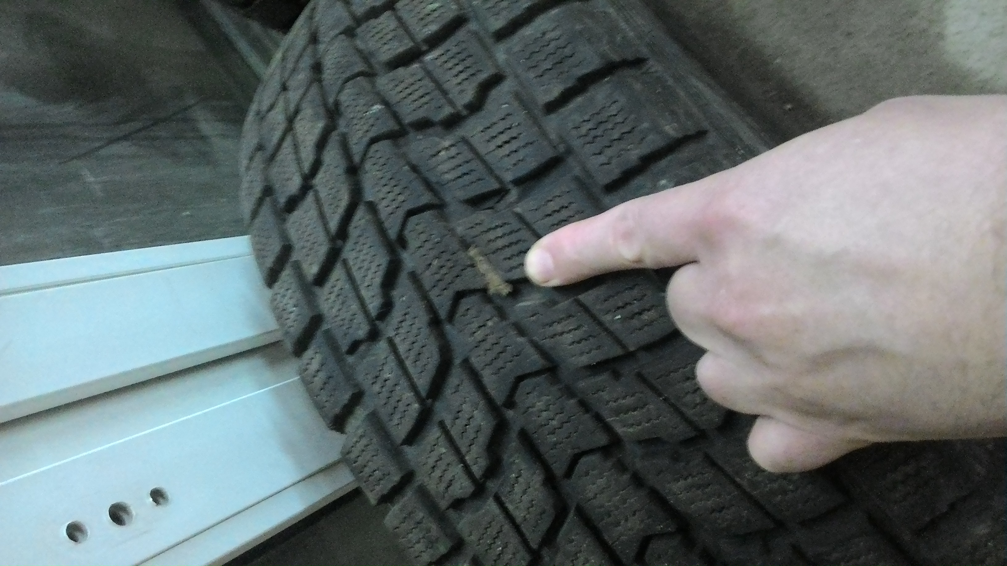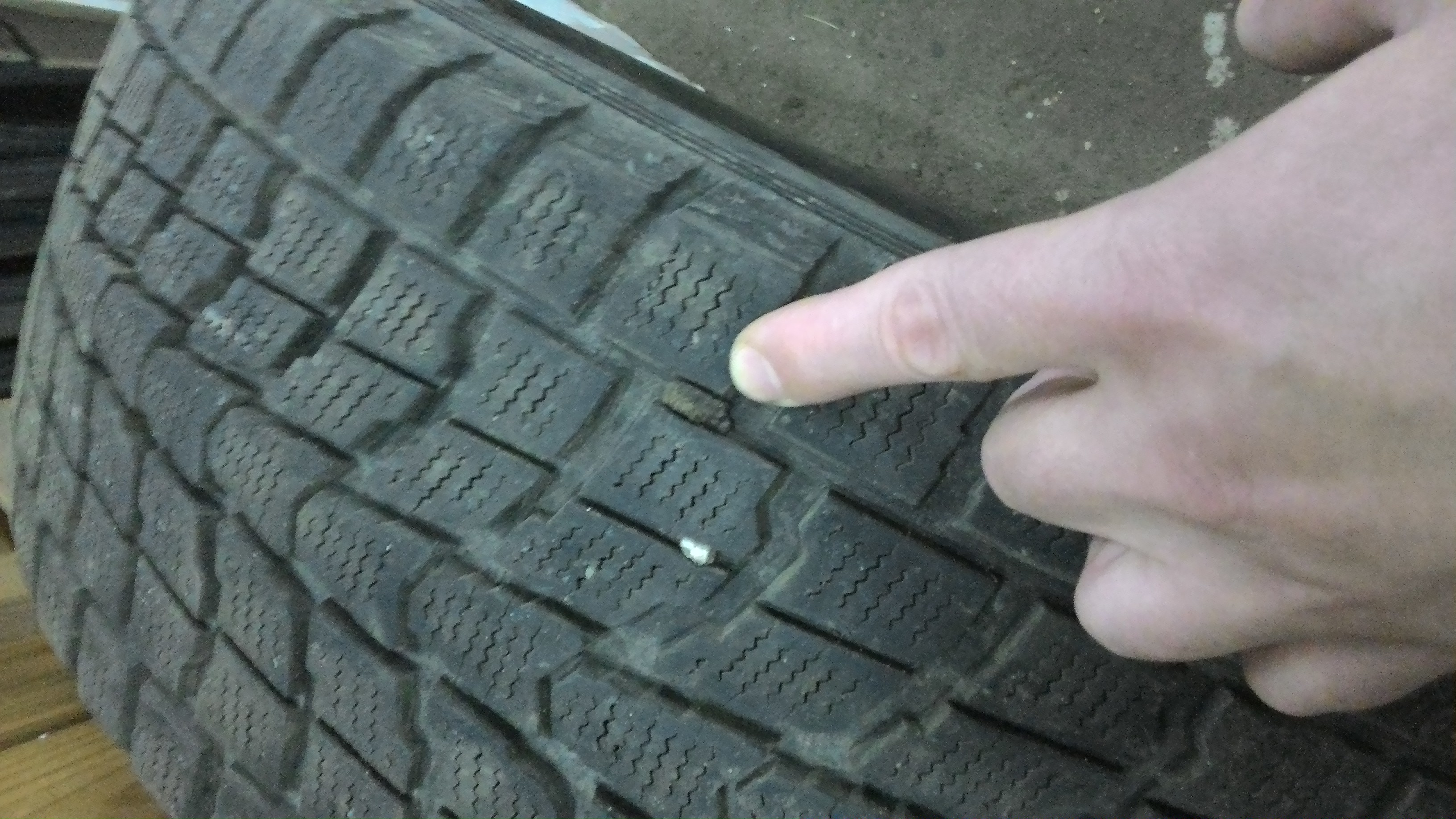 Три шины имеют по одному зажгутованному проколу, четвертая без проколов.