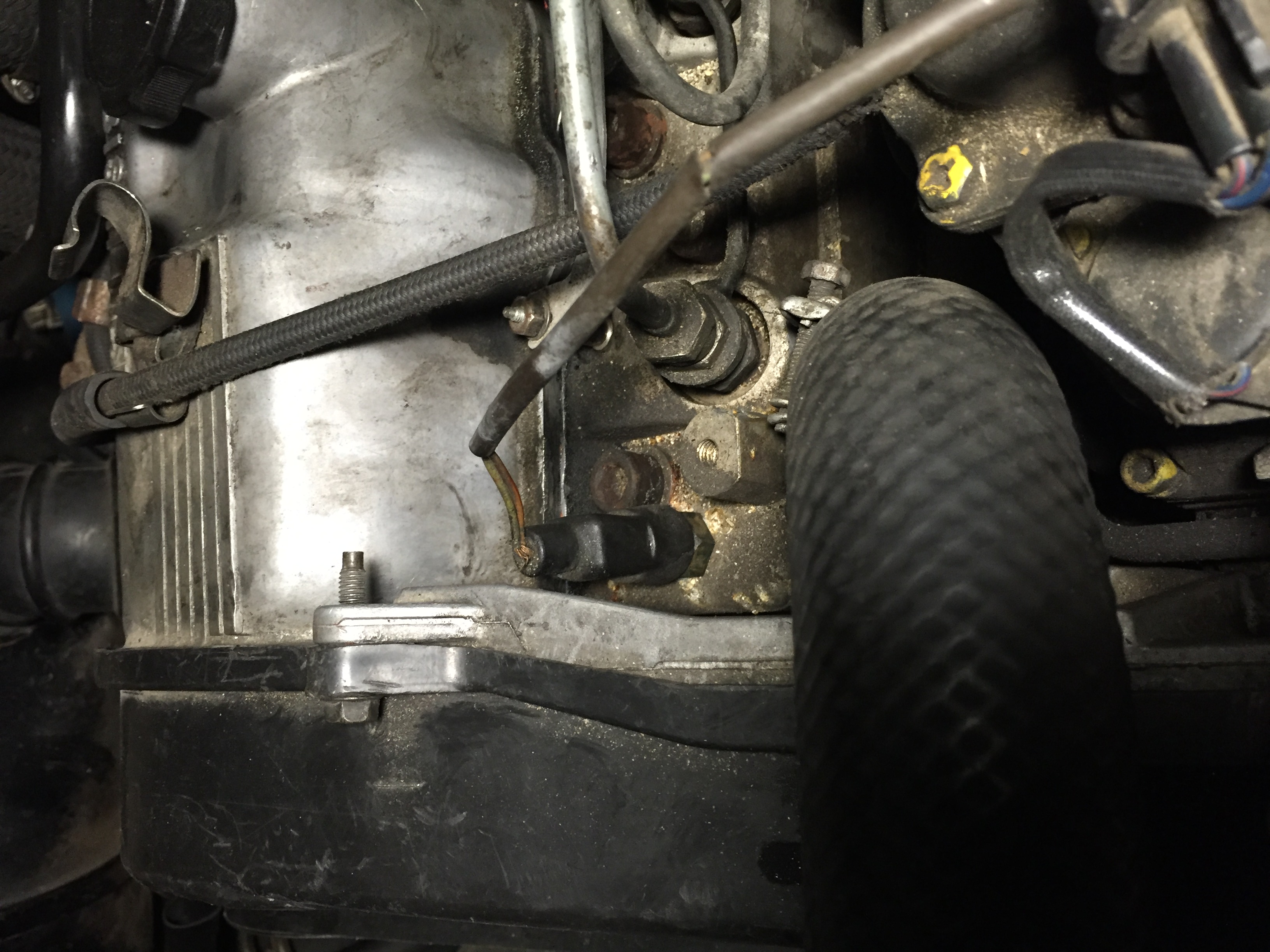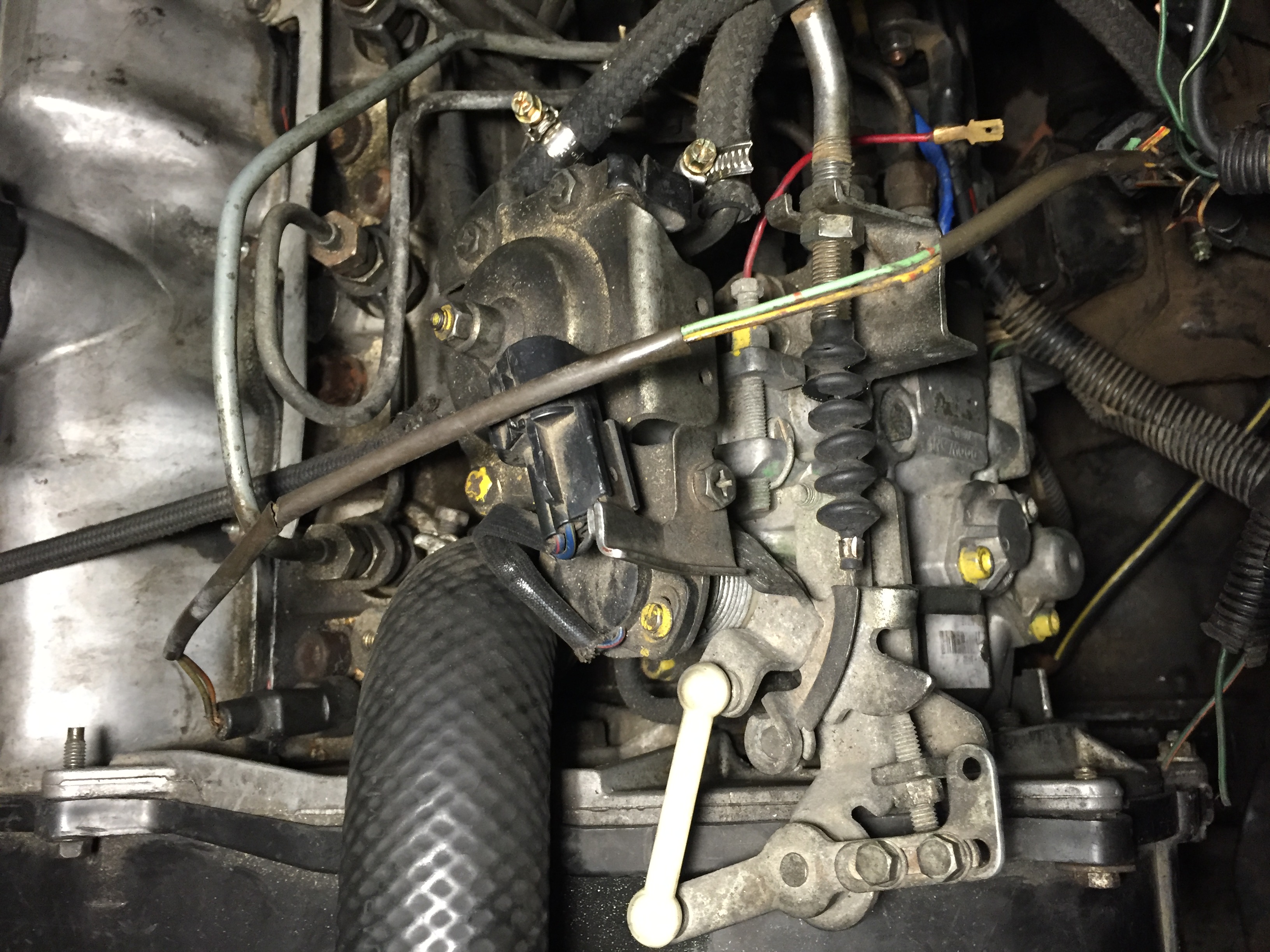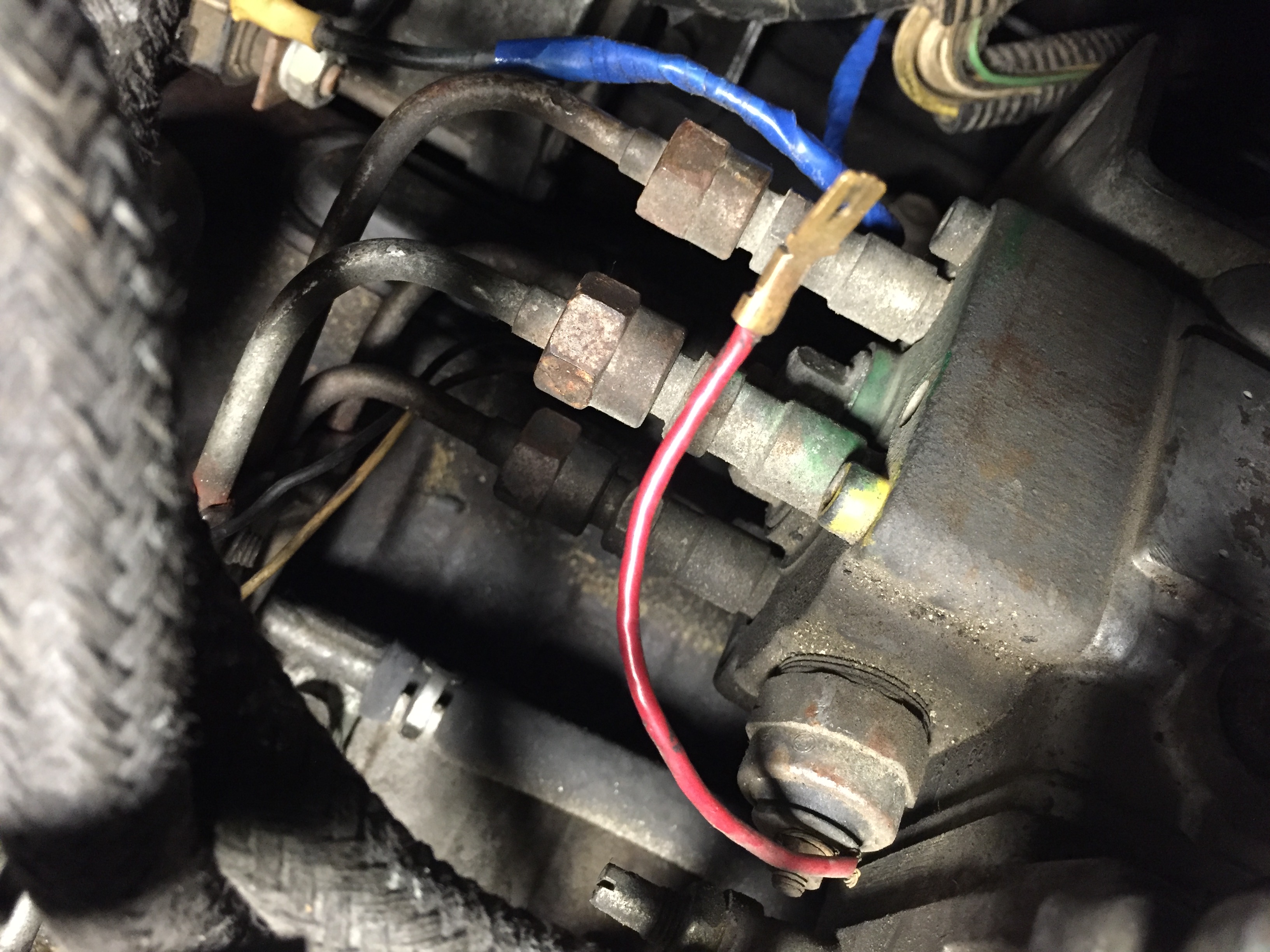 — фото №4: сзади ТНВД между головой блока и самим ТНВД, из ТНВД выходит какой-то датчик (если я правильно понял, то это обратный клапан — его я заснять не смог), из него выходят два провода, который потом имеют соединение (на фото в центре в глубине), после соединения эти два провода — черный и желтый, просто оборваны;