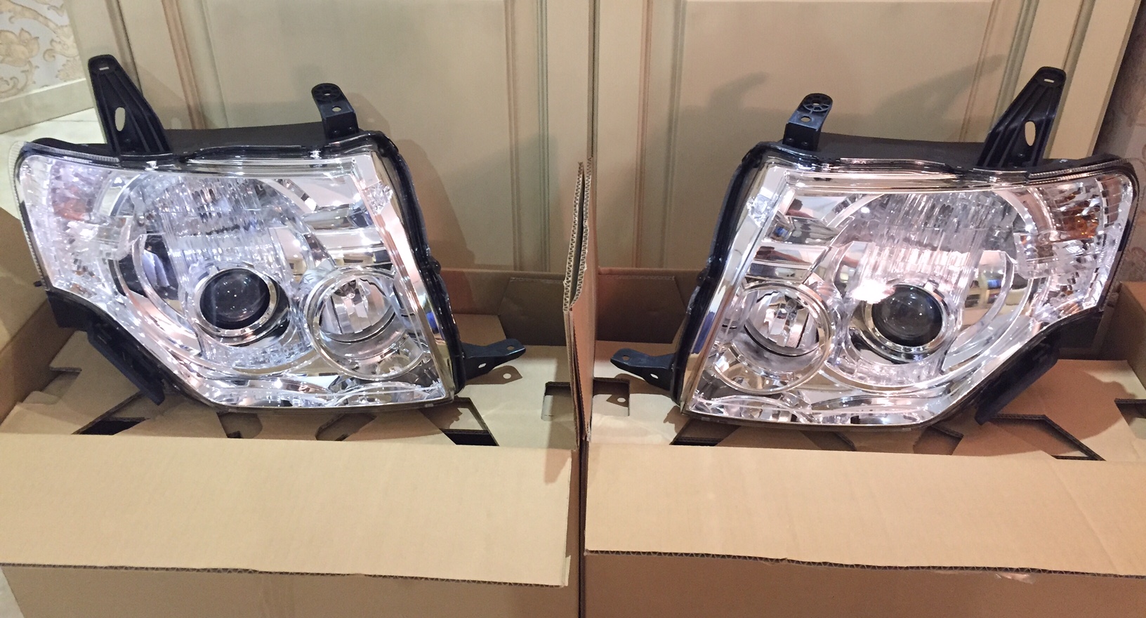 Продам фары на Pajero IV оригинальные, галоген с лампочками с завода соответственно. В заводских коробках.