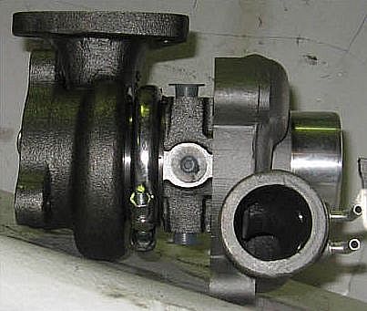 Не надо там снимать выпускной коллектор. Последовательность я Вам описывал выше. Патрубки все отсоедините. У вас будет видна улитка холодной части. Вот фото турбины. Чтобы было ясно что там страшного нет ничего. Вам нужно добраться до хомута что в середине на фото, и отсоединить все мешающее. Т.е. трубку подачи масла, если охлаждение еще и тосолом, то и трубки охлаждения. Снимете картридж с улиткой, сможете понять причину что там гремело.bmaxi писал(а):может проще выпускной коллектор снять и все?