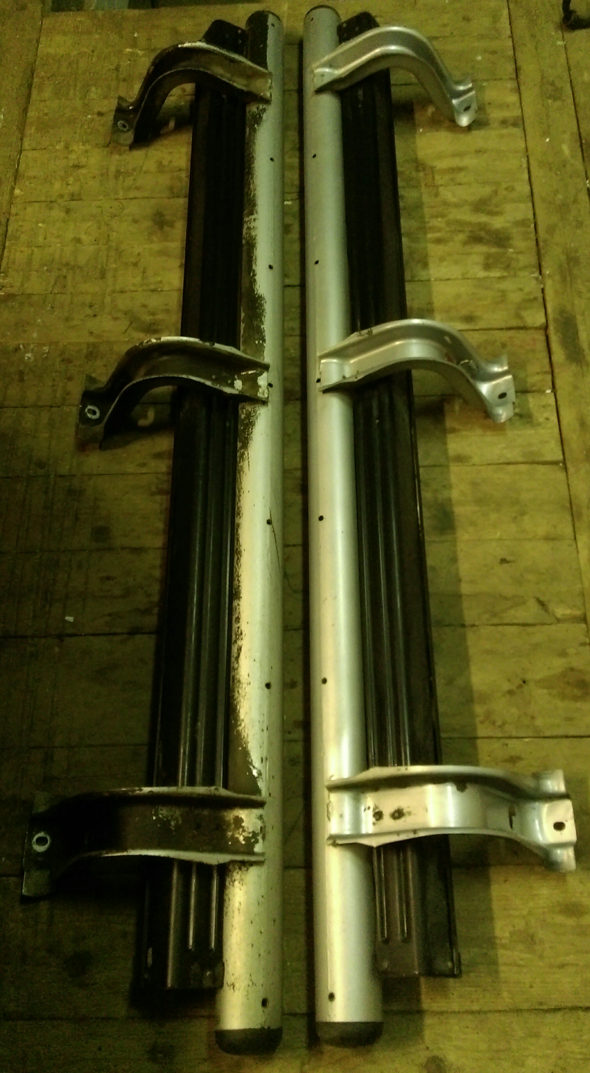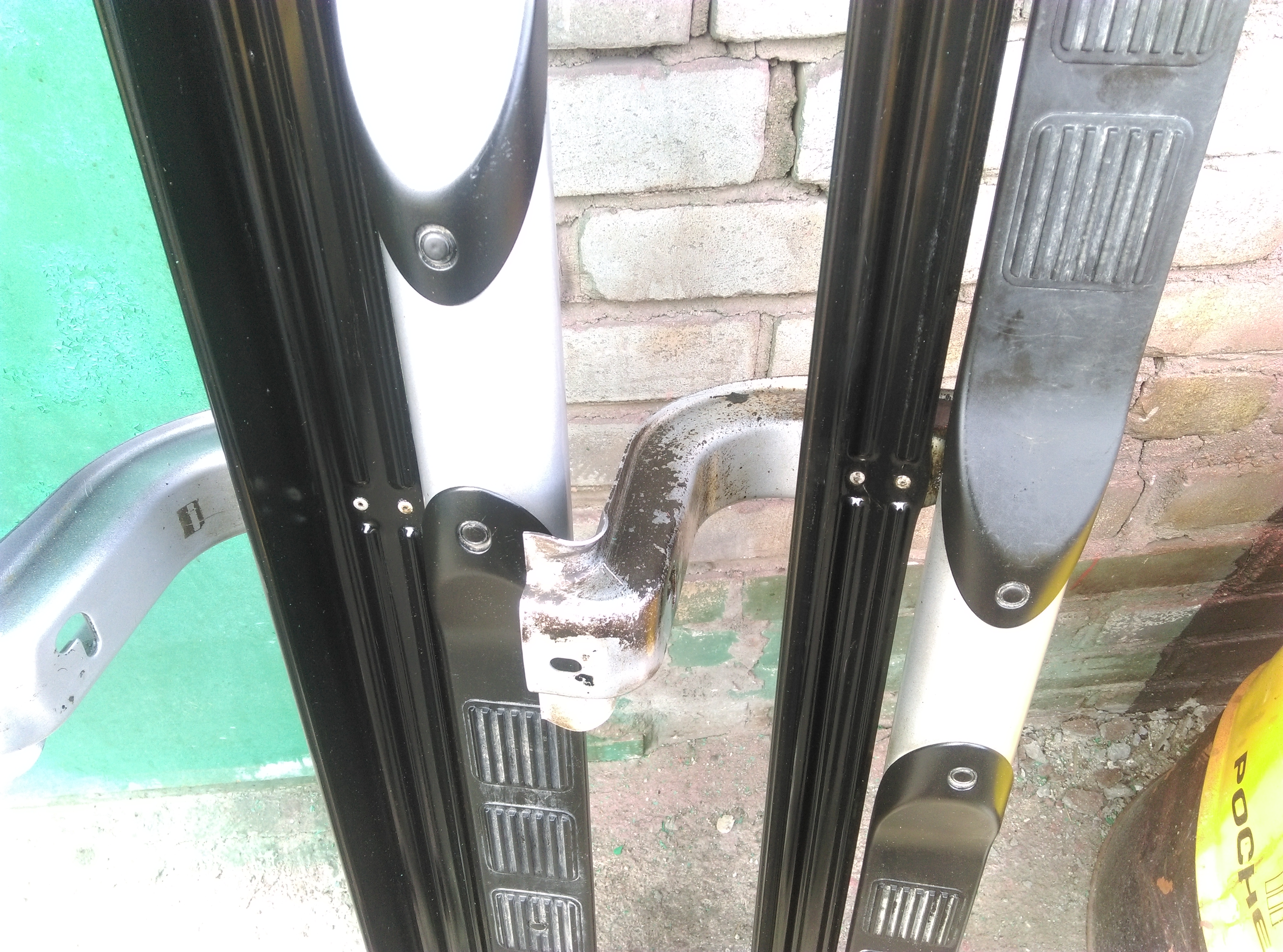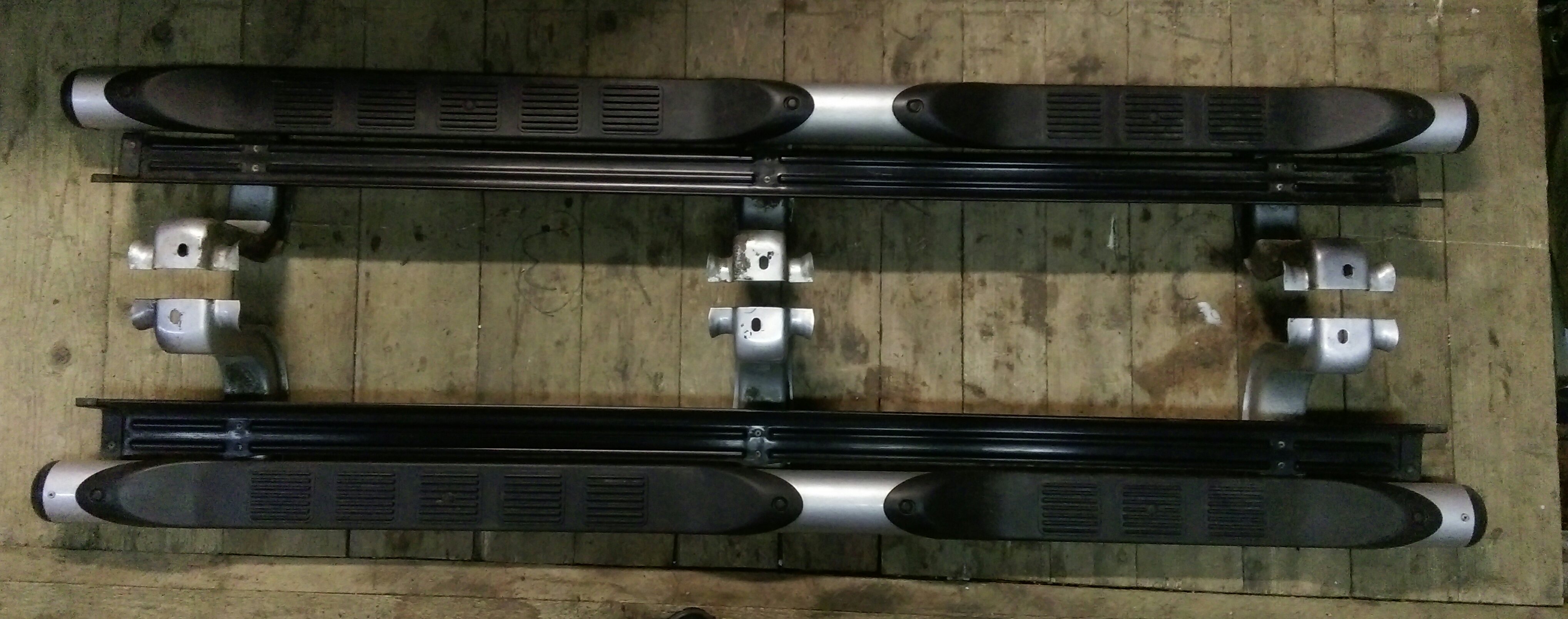 Продам штатные подножки от Паджеро Спорт 2012 г.в. Левая подножки менялась по гарантии полгода назад. Черный налет это антикор, но так же есть и царапины и пятнышки ржавчины, на фото видно! Цена 8000 рублей. Тел 89021381581