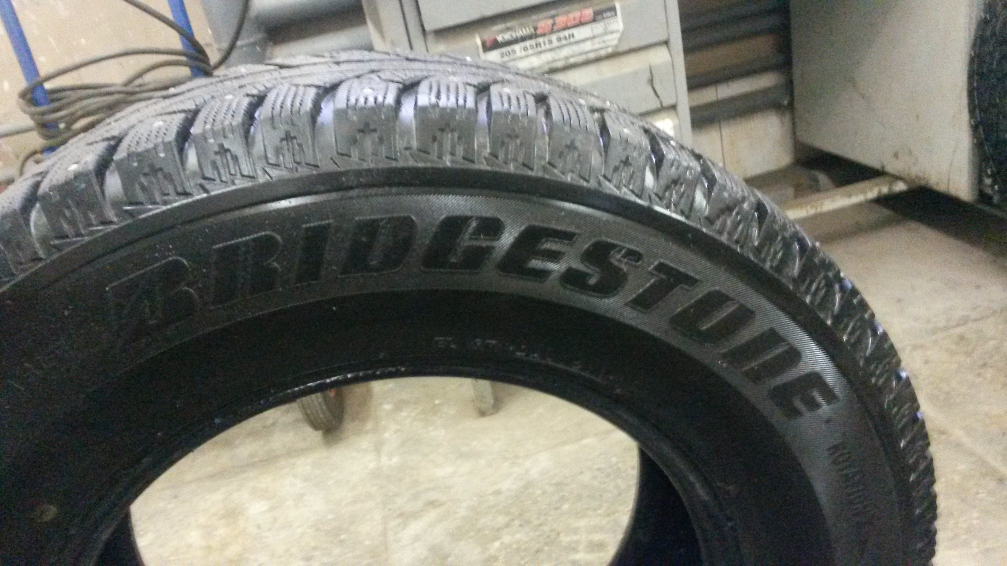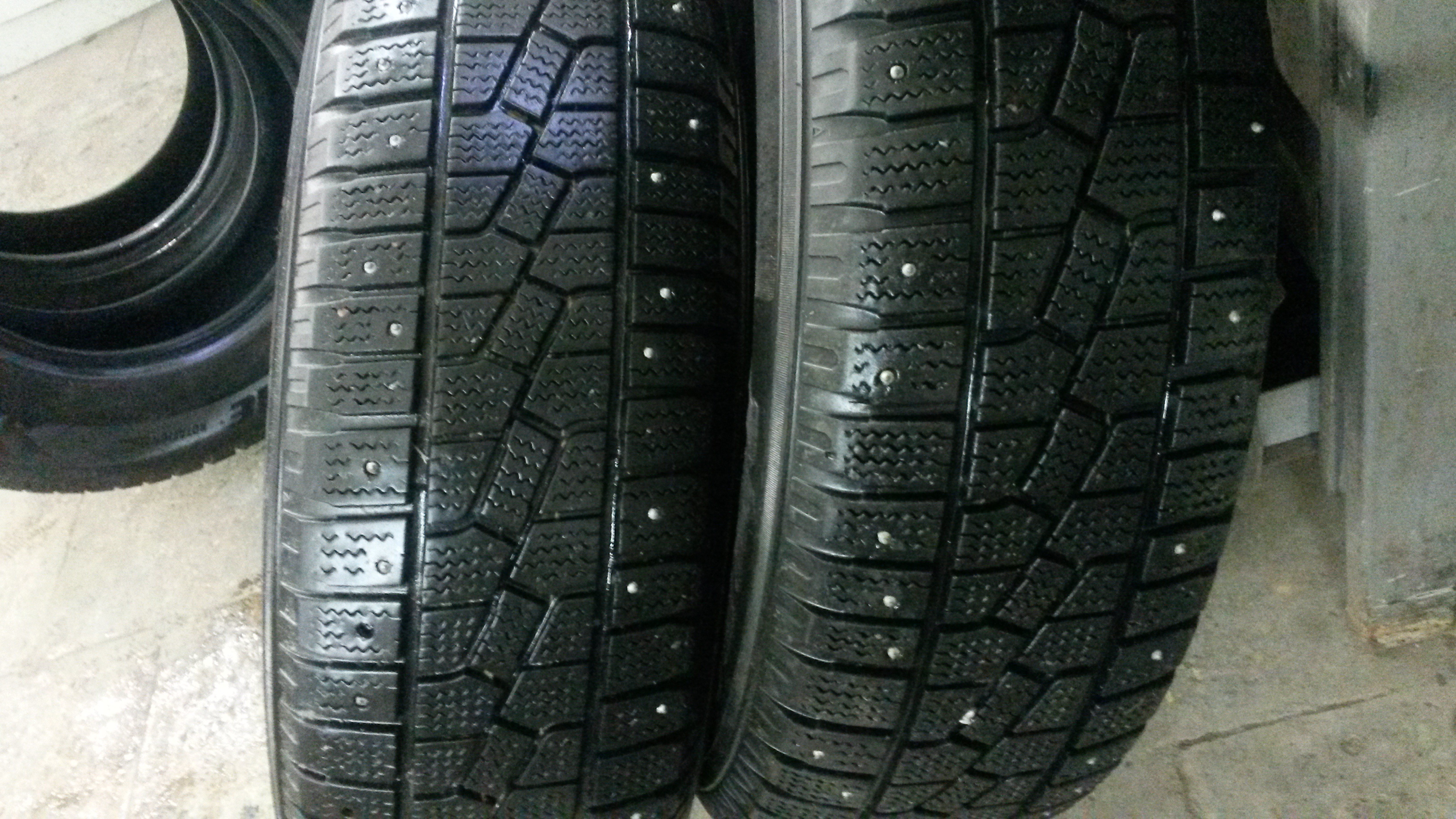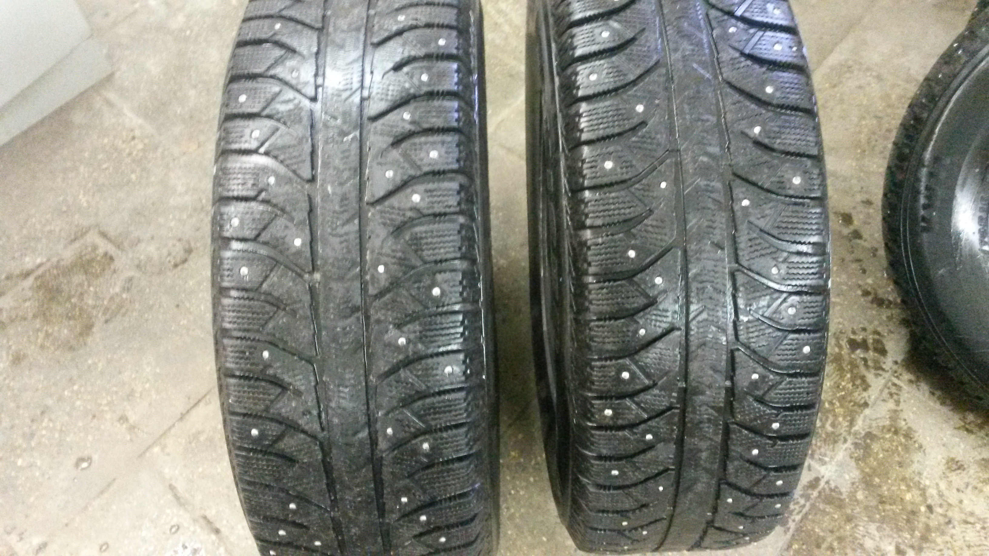 Две шины Бриджстоун айс круизер 7000 износ около 40% и две шины Кумхо айзен студ KW11 износ около 25%