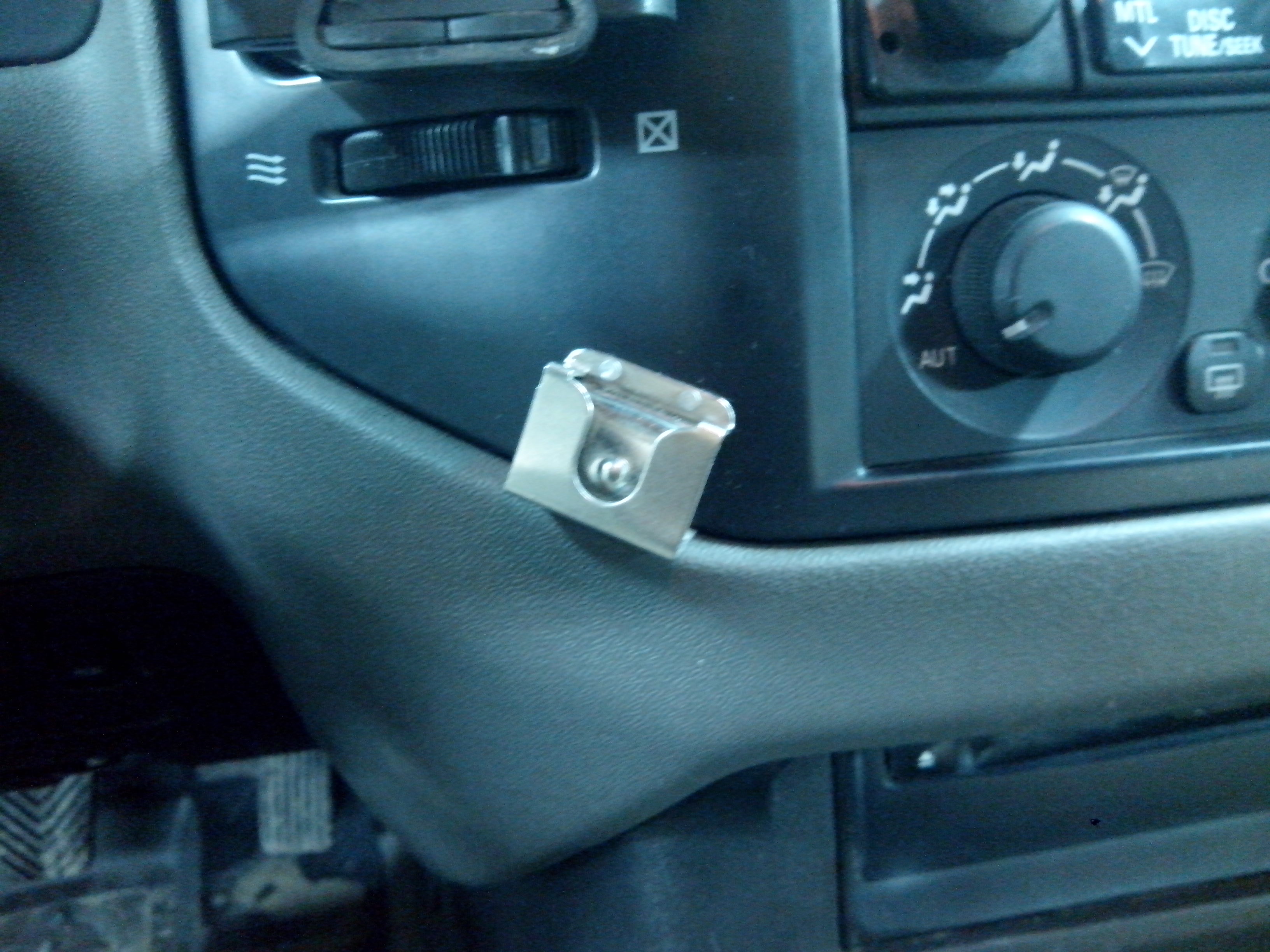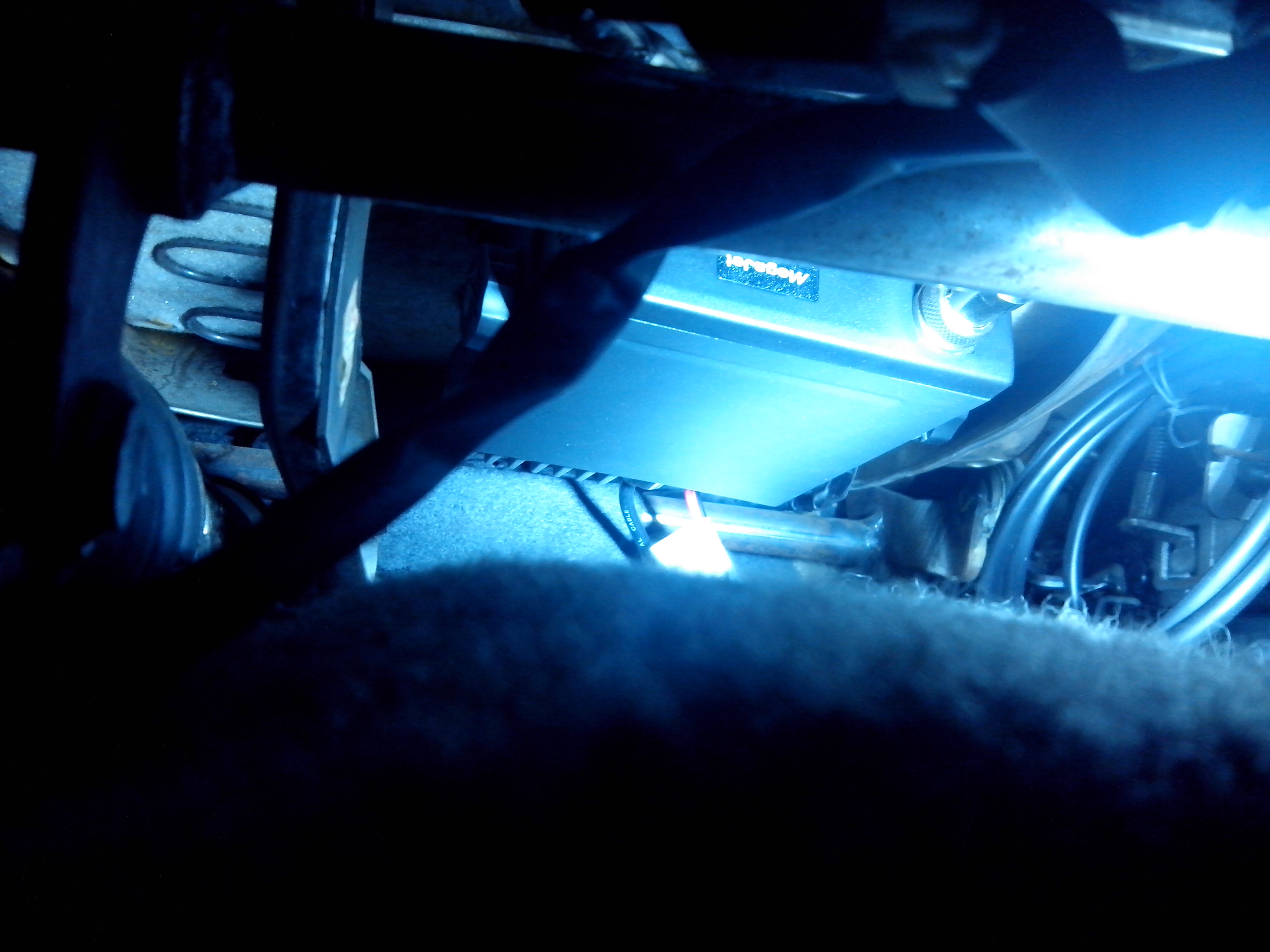 Итак, сам блок рации установил под переднее пассажирское кресло. Родной кронштейн просто просунул под пружины сиденья, а к нему саму рацию. Питание вживил в провода которые идут к разетке, которая стоит в баре между сиденьями. Мне показалось, что когда рация работает от положения на замке АСС, очень удобно.