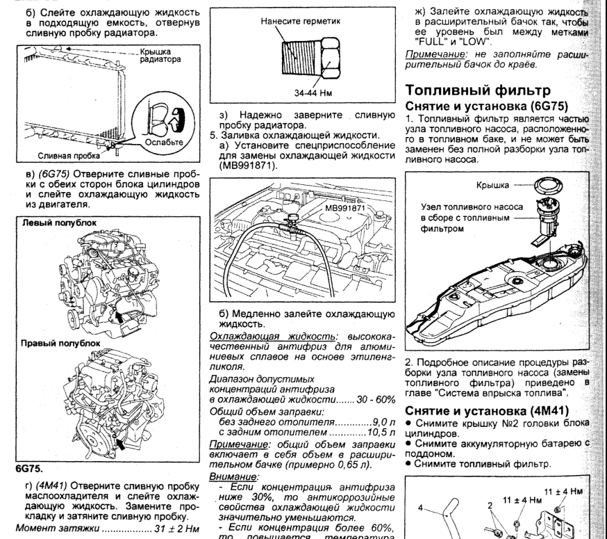 Остальное вроде как сидит в контуре заднего кондея, если я ничего не путаю.RUS72 писал(а):Поменял я антифриз, согласно руководства, которое опубликовал выше Андрей Лебедь (спасибо ему!). В общем ничего сложного нет. Вот только в Руководстве по эксплуатации написано, что объём охлаждающей жидкости 10,5л., а по факту вошло максимум 8л.