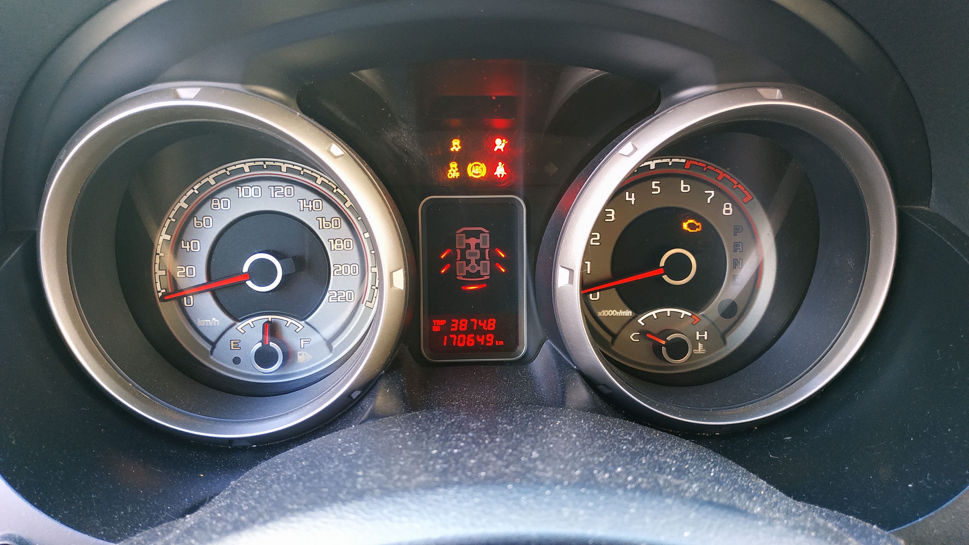 На ходу в какой-то момент лампочка "нет заряда" погасла. Не успел обрадоваться - отключается приборка. Гаснет подсветка, падают стрелки спидометра и тахометра, гаснут колесики "4ВД", загораются ACS OFF, "скользкая дорога, ABS, стояночный тормоз, мигает индикатор межосевой блокировки.