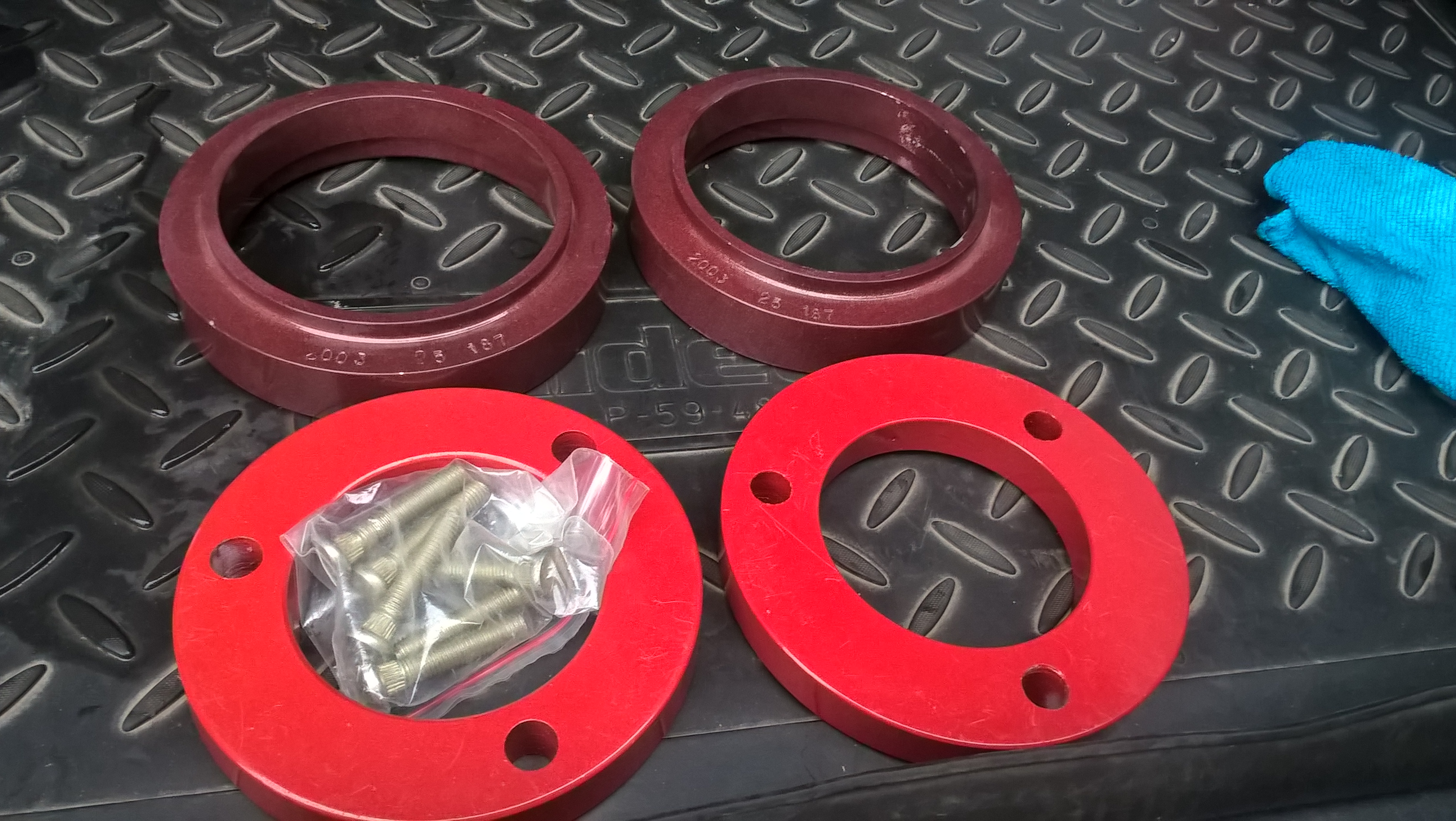 Продаю комплект (4 шт.) алюминиевых проставок для увеличения клиренса автомобиля Паджеро 4, общий лифт 4-5 см.