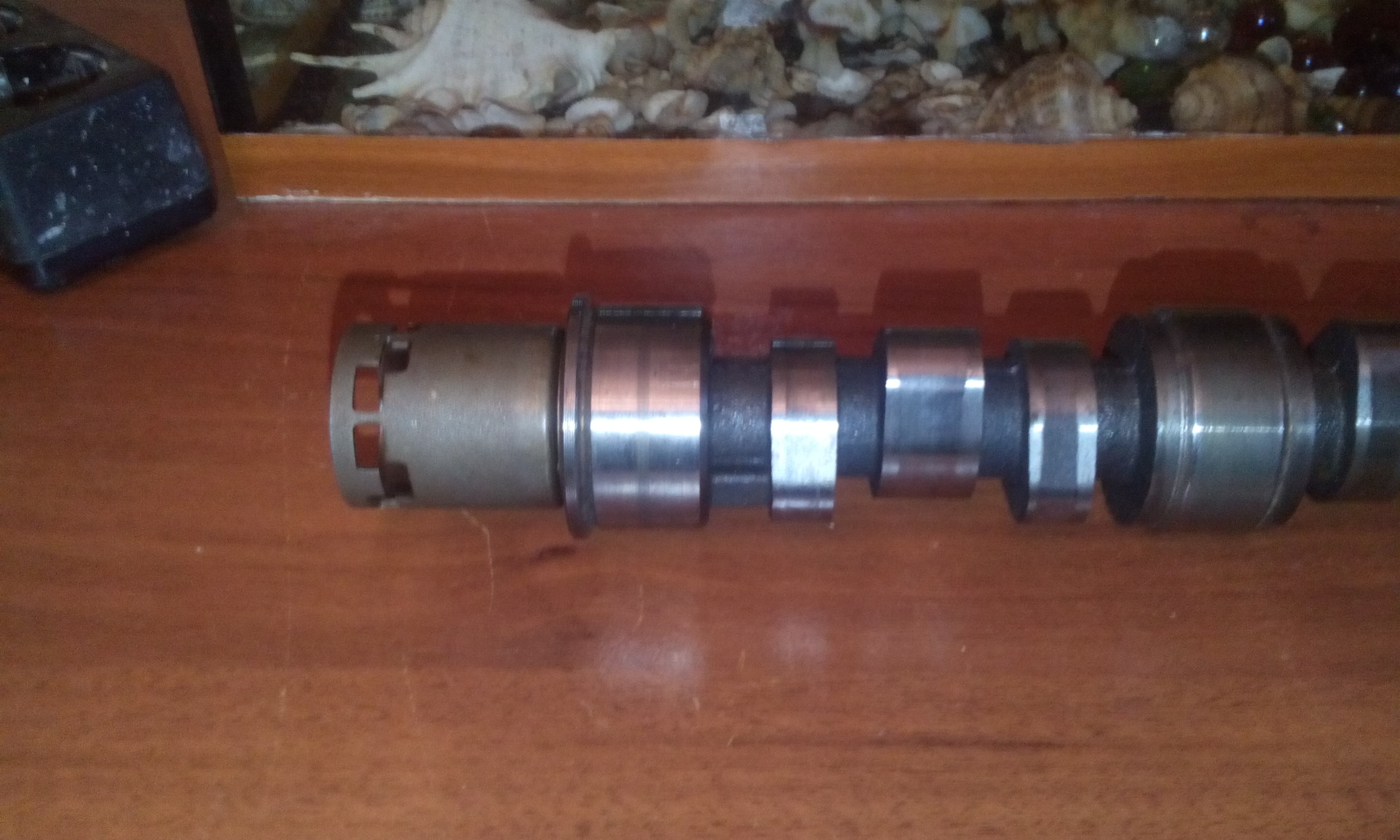 Всем привет. Эксперимент с заменой ГБЦ почти завершен.После совета с а/электриком решено было снимать ГБЦ с водительской стороны. Т.к. датчики р.валов разные, (с 6G72-24-Холла, мой-индуктивный) то и форма сигнала разная, поэтому свечи и заливало. Взял свои р.валы и поездил по городу в поисках толкового токаря с толковым оборудованием, никто не хотел браться за работу. Нужно было сделать проточку с заднего торца р.вала со смещением от центра и под нужным углом к кулачкам р.вала и сделать углубление с резьбой М8 под болт, который держит считывающую втулку. Уже было отчаялся... Но друг вспомнил, что у него есть такой человечек. Валы были отданы вместе с втулкой в воскресенье вечером, вчера вечером забрал. Сидел допоздна, сравнивал проточки. "На глаз" все четко. Но т.к. угол проточки рассчитывали на заводе с помощью хорошего оборудования, то на 99,9% душа спокойна. Сборка и запуск откладываются на следующую неделю ввиду нехватки времени. За все время ремонта выяснил, что р.валы одинаковые на 6G72-24 SOHC, на 6G74 SOHC и на 6G75 SOHC. Но только на 72-м моторе валы без проточки. С 3.5 и 3.8 взаимозаменяемые. ГБЦ взимозаменяемые 6G72-24 и 6G74 одновальные. С 3.8 головы чуть другие. Стоимость токарных работ составила 3000р.Фотки позже.