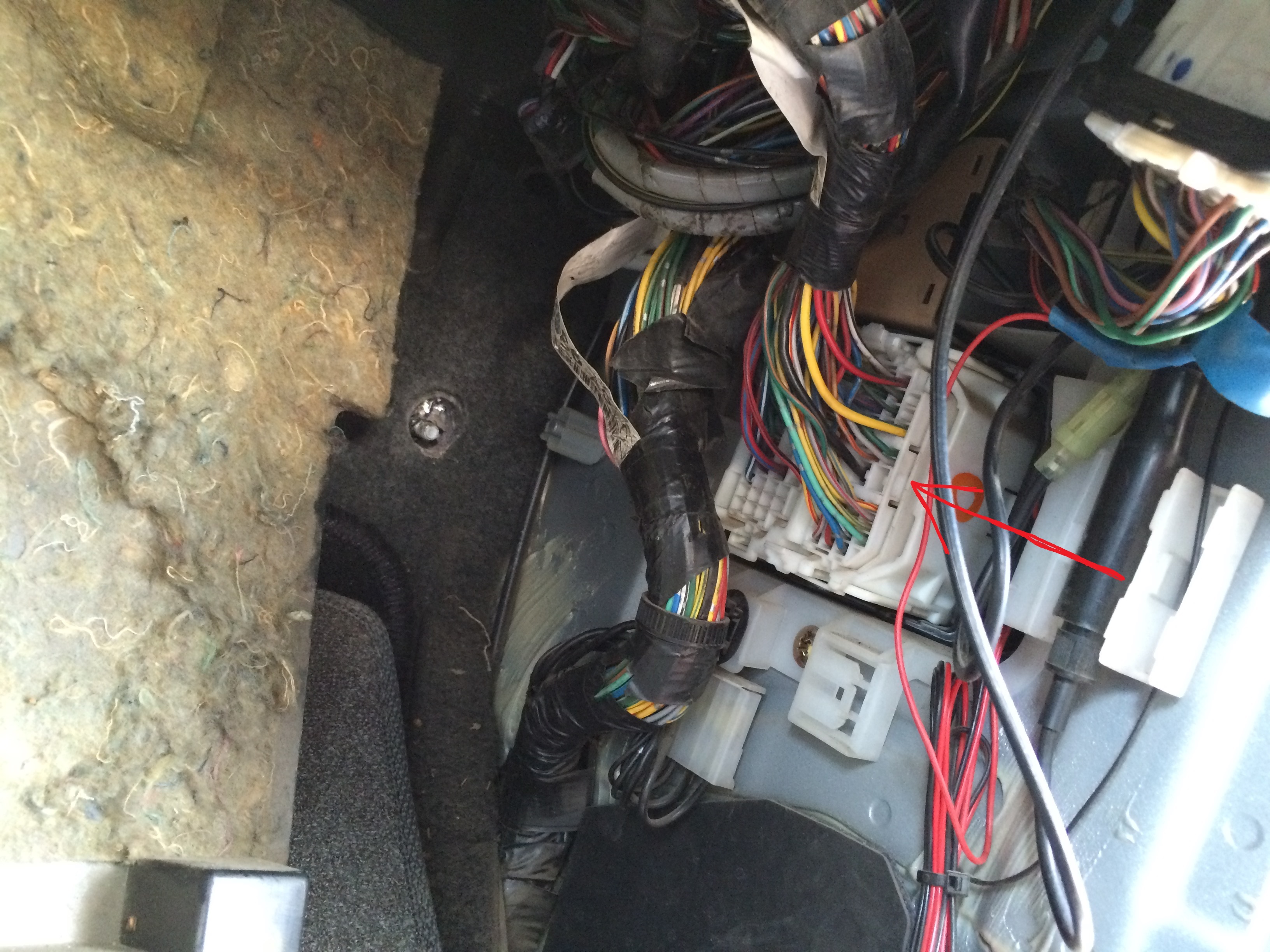 Снял накладку под ногами справа пассажира, обнаружил разъем (на фото стрелкой указал) пищит там - это как бы источник иска. Вынимаю разъем писка нет вообще.