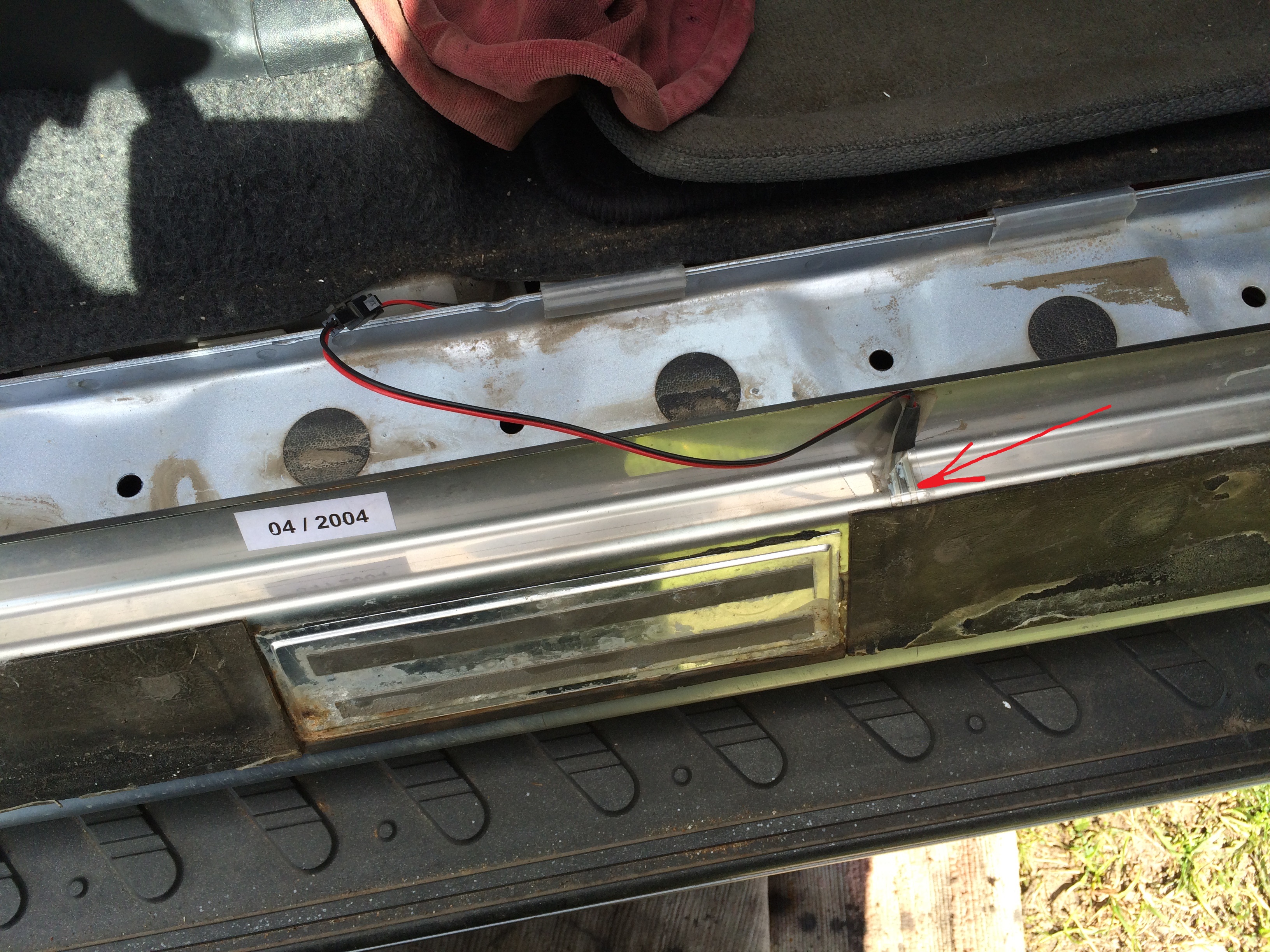 Снял накладку порога, там фишка и 2 тоненьких контакта и они пищат на фото красной стрелкой, писк я понял такой, что как коротыш, как мышь пищит только непрерывно.