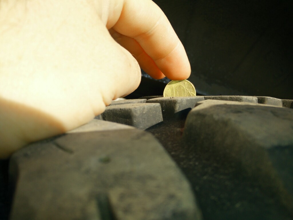 Износ по краям (с внешней стороны), шашки от 12-13 мм до 8мм - это как раз там, где штангенциркуль приложил, собственно это самое изношенное место из всех 4х колес