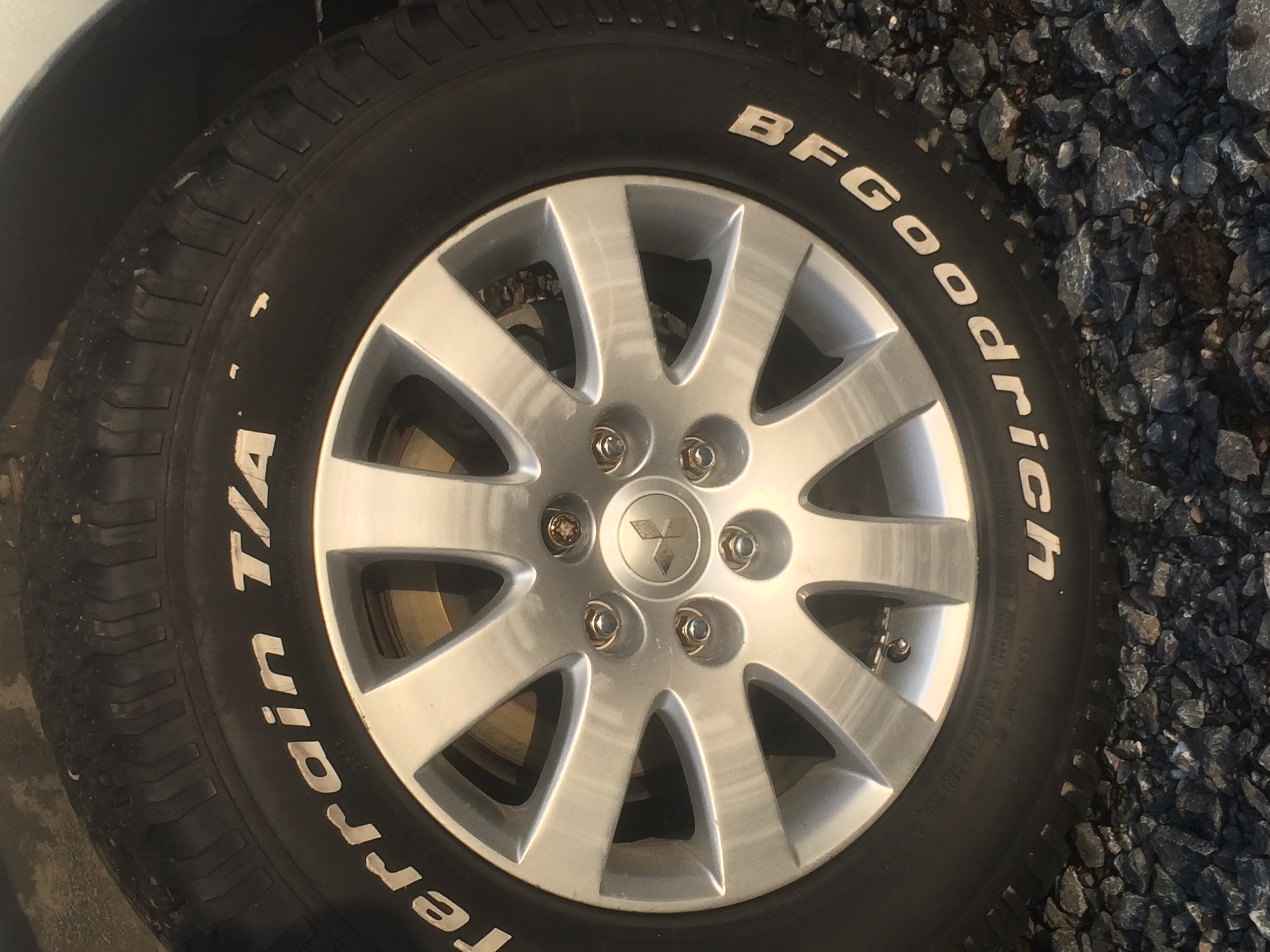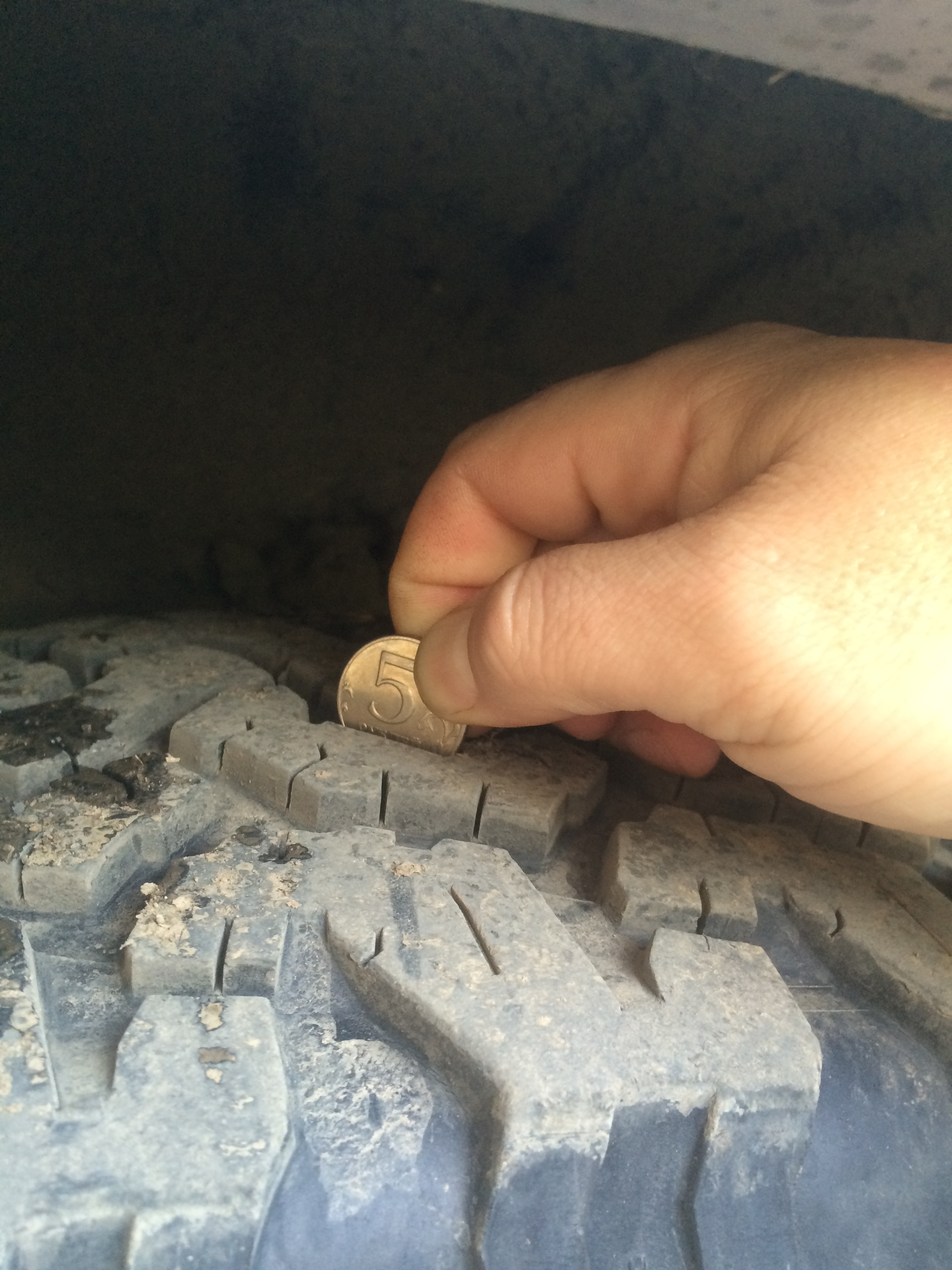 Резина АТ год выпуска 2008, остаток протектора еще приличный пара 5 мм, пара 6 мм, на одной шине есть следы ремонта.