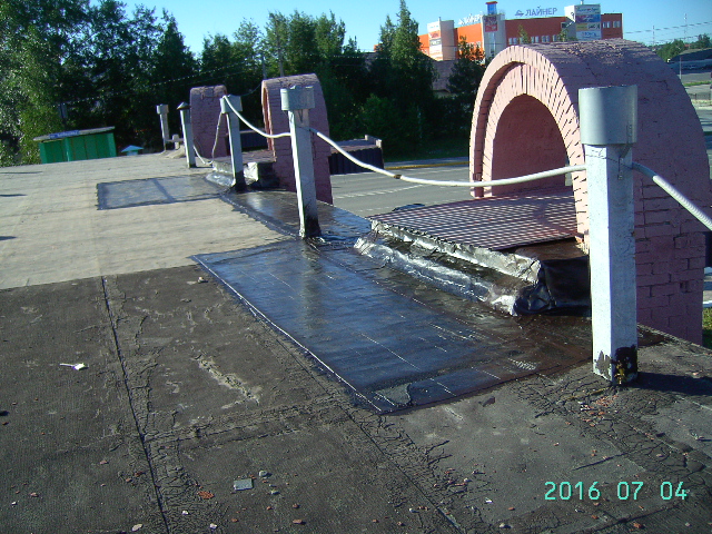 Ну достал я администрацию, отремонтировали сегодня крышу. За качество не ручаюсь, но пока красиво сделали. До прокурора не дошло. Но жилы мне помотали, переписки было много. Но в конце концов добил я их. Во посмотрите на их работу. Мой гараж между двух этих арочных конструкций, элементов памятника.