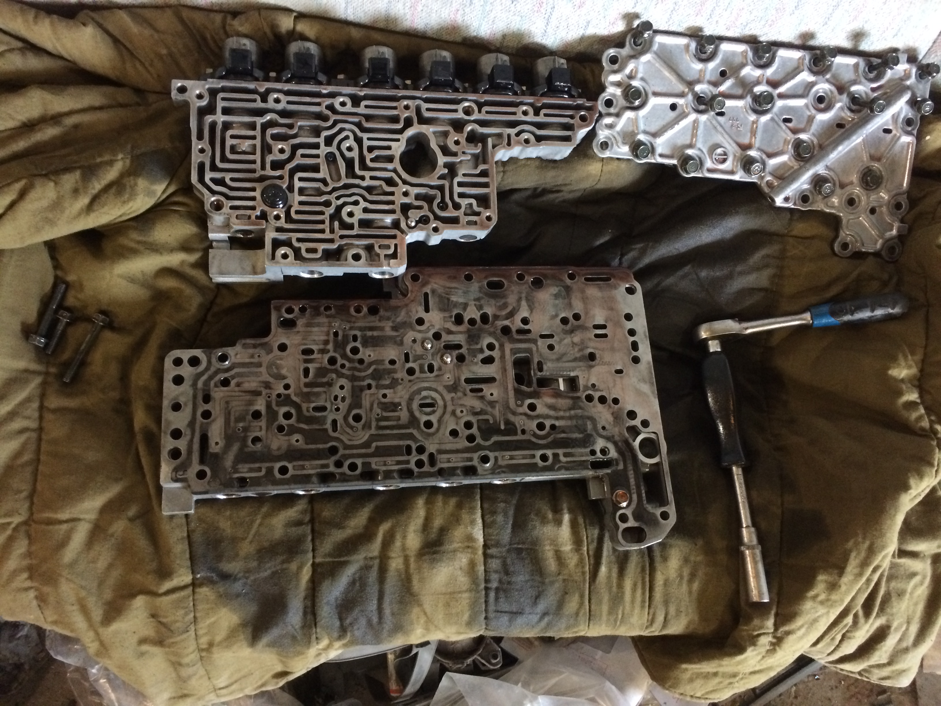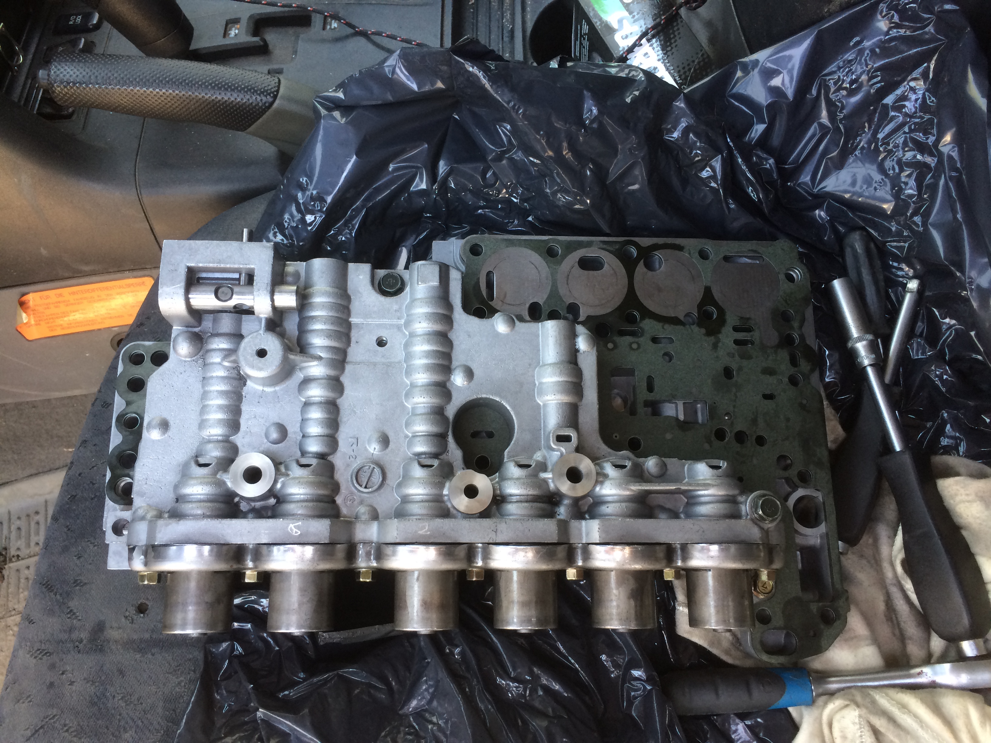 Рядом с гидроаккумуляторами на на АКПП каналы, через один из них приводиться в действие поршень 2 brake clatch, данные каналы герметезируются прокладкой которая устанавливается на гидроплиту. Если прокладки нет то есть вероятность что давление на поршене 2 brake clatch может быть несоответствующее. Не совсем понято как работала АКПП без прокладок.