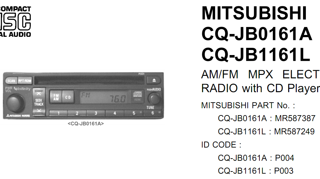 Имеется штатная магнитола Mitsubishi MR587387 Infiniti P004 Panasonic CQ-JB0161A.