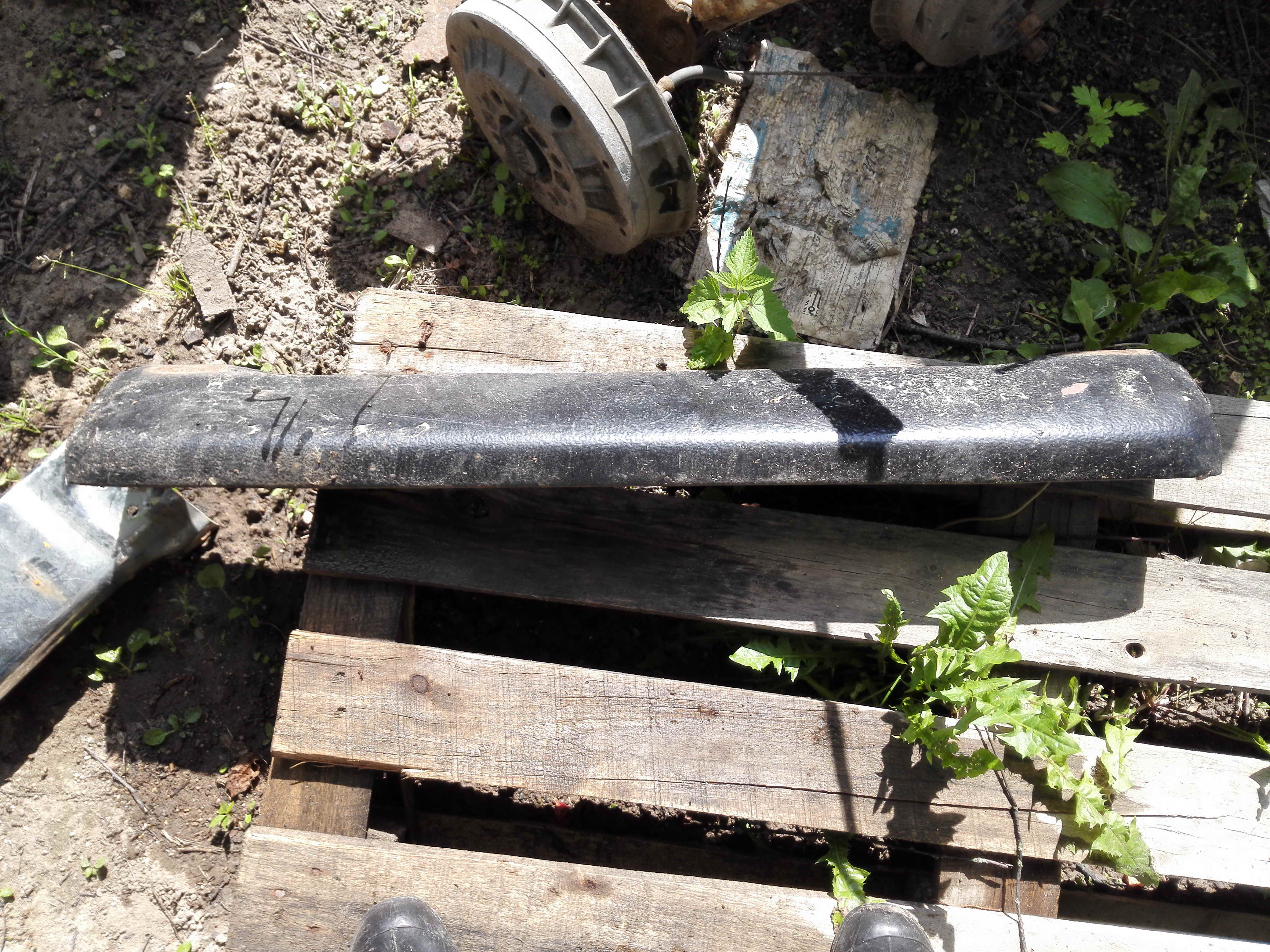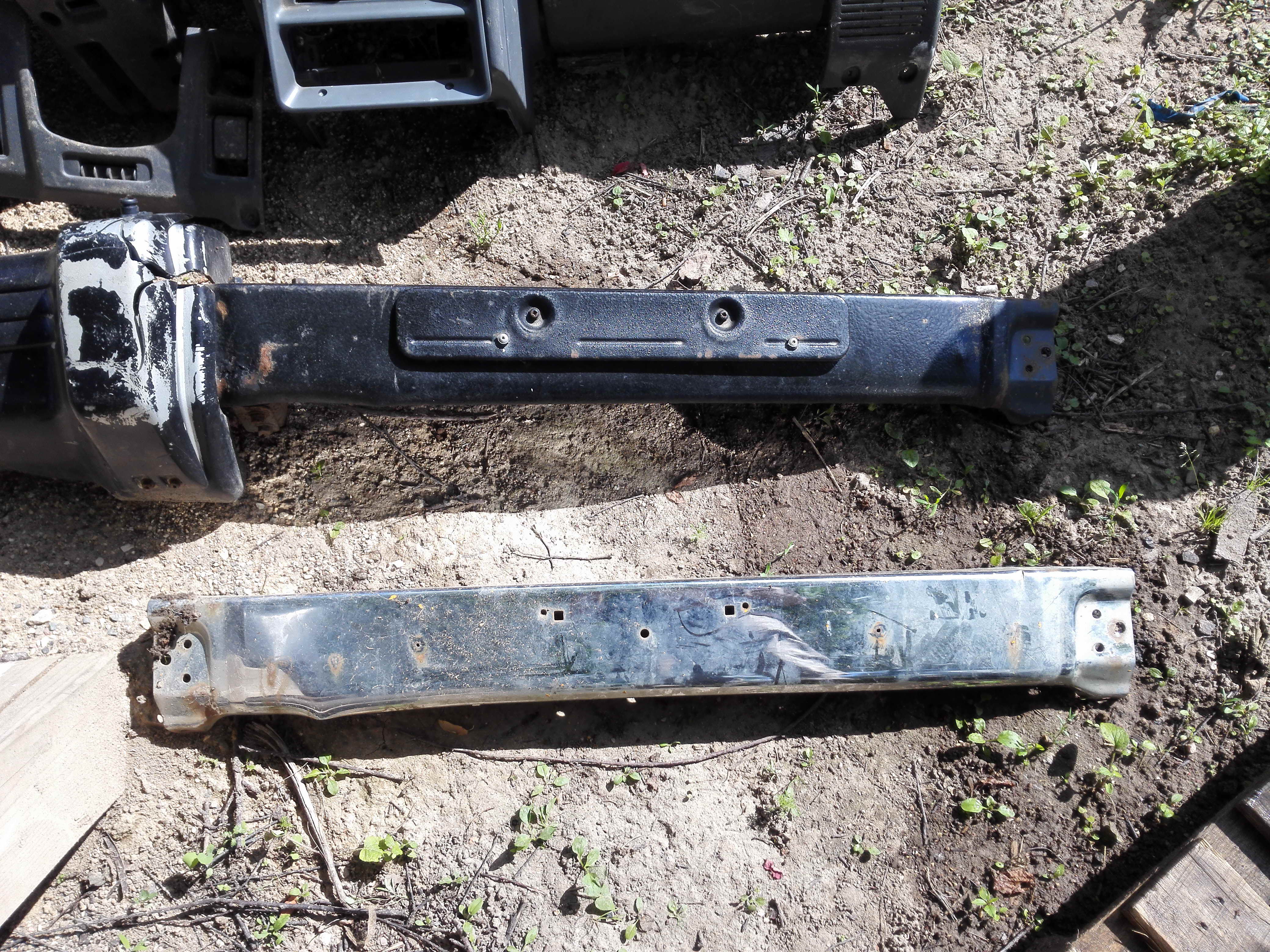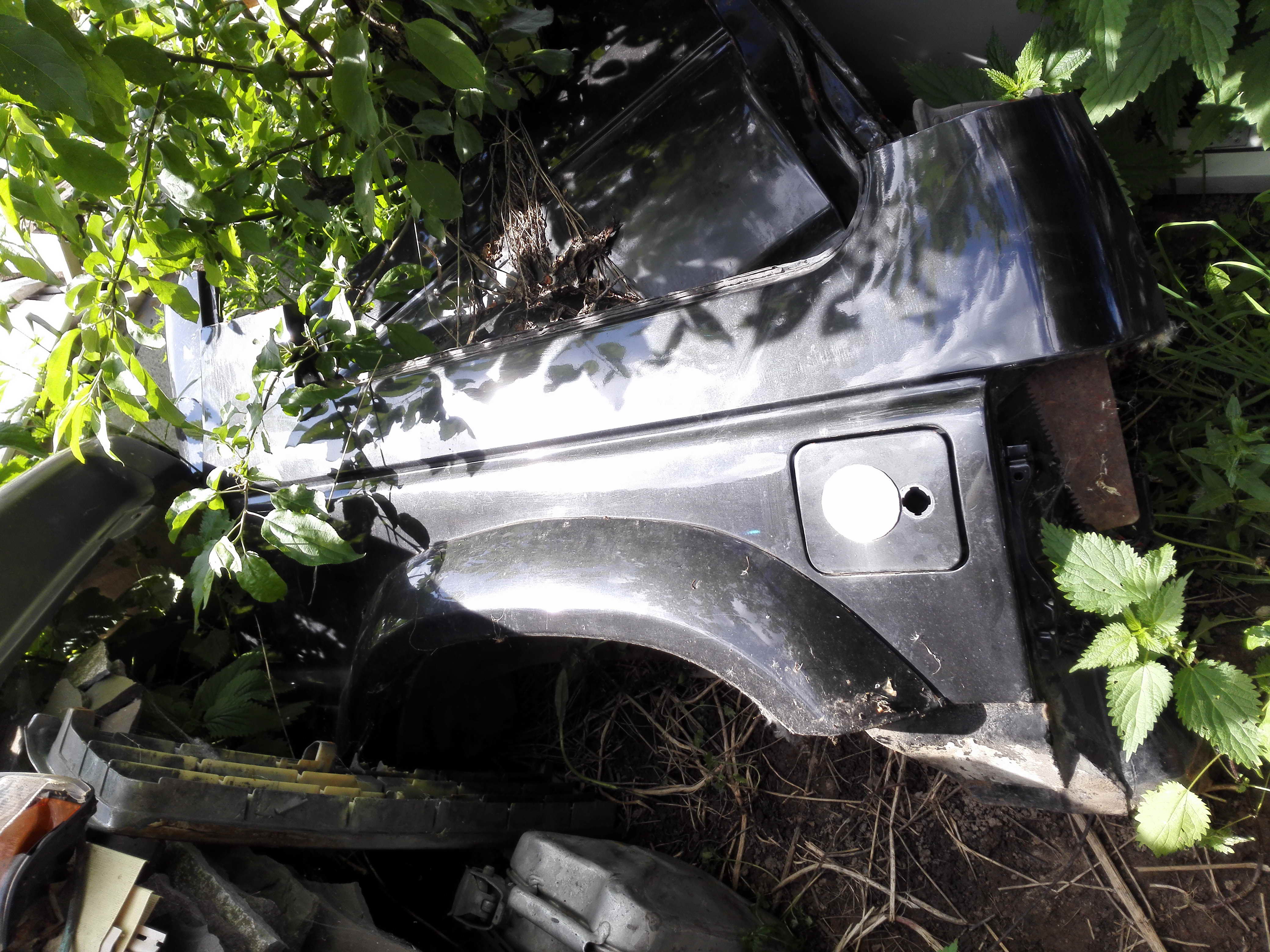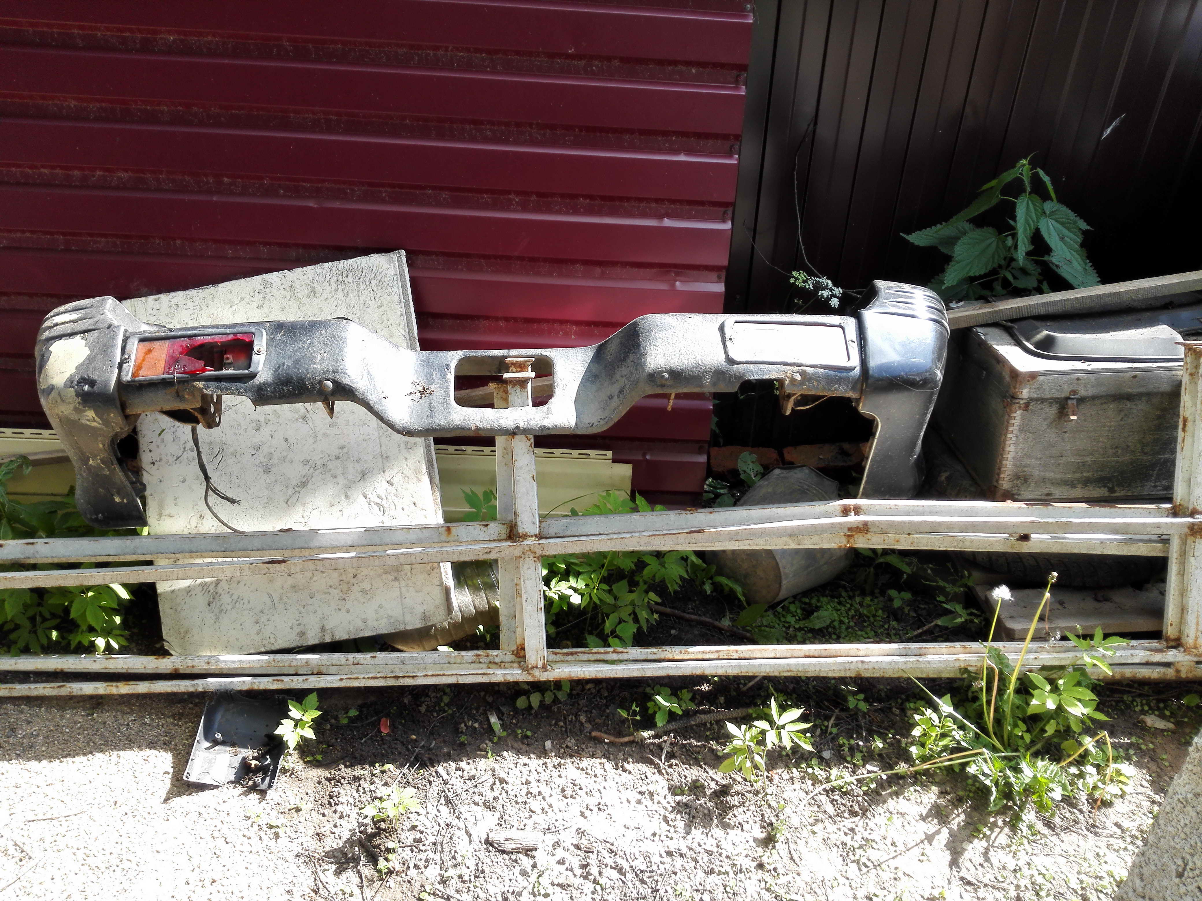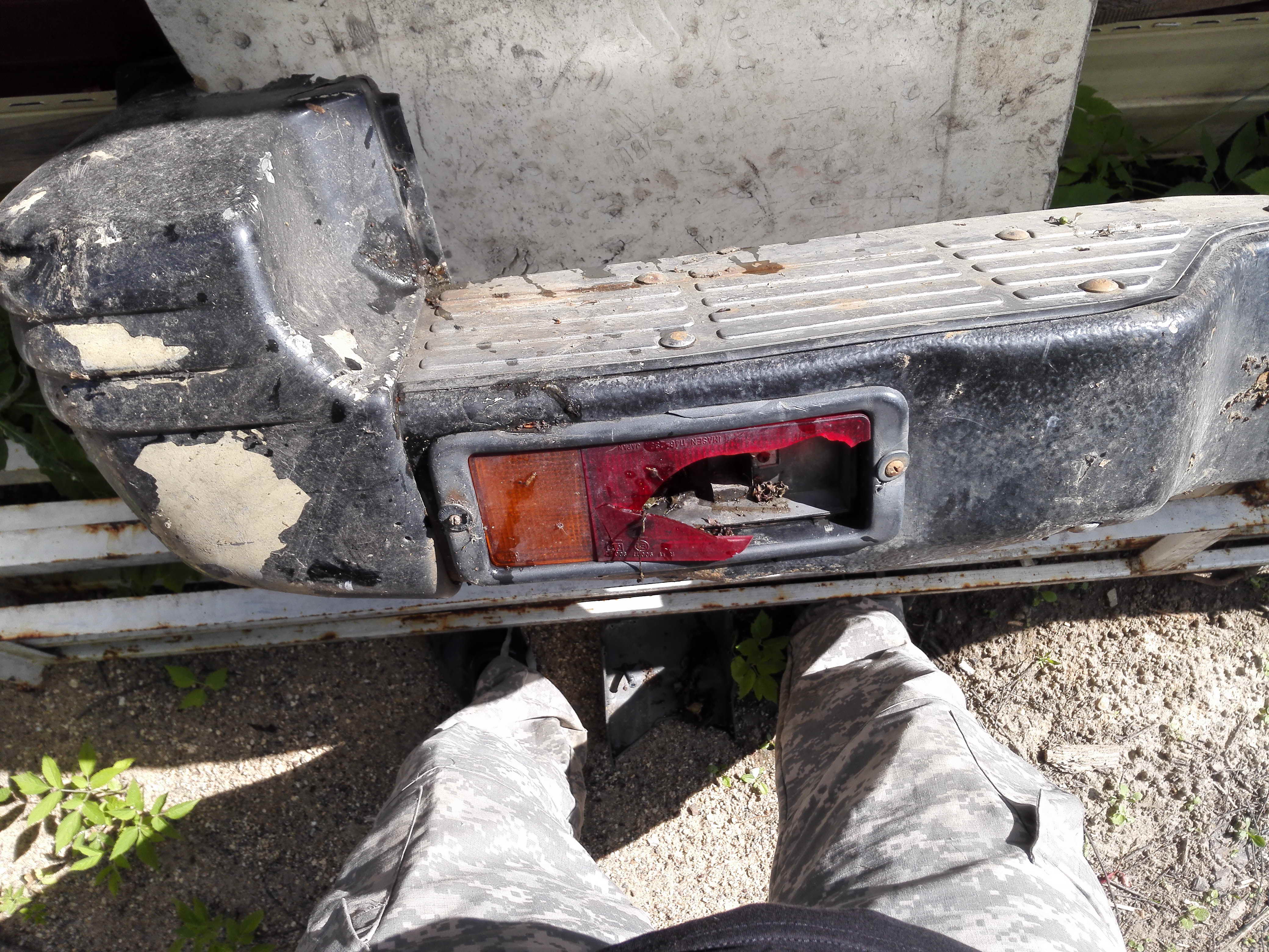6. Задний бампер. Под расширители. Сам в черном антигравии, сверху хром накладки. Пластик целый, но требует покраски. Левый фонарь разбит. 1000 руб.